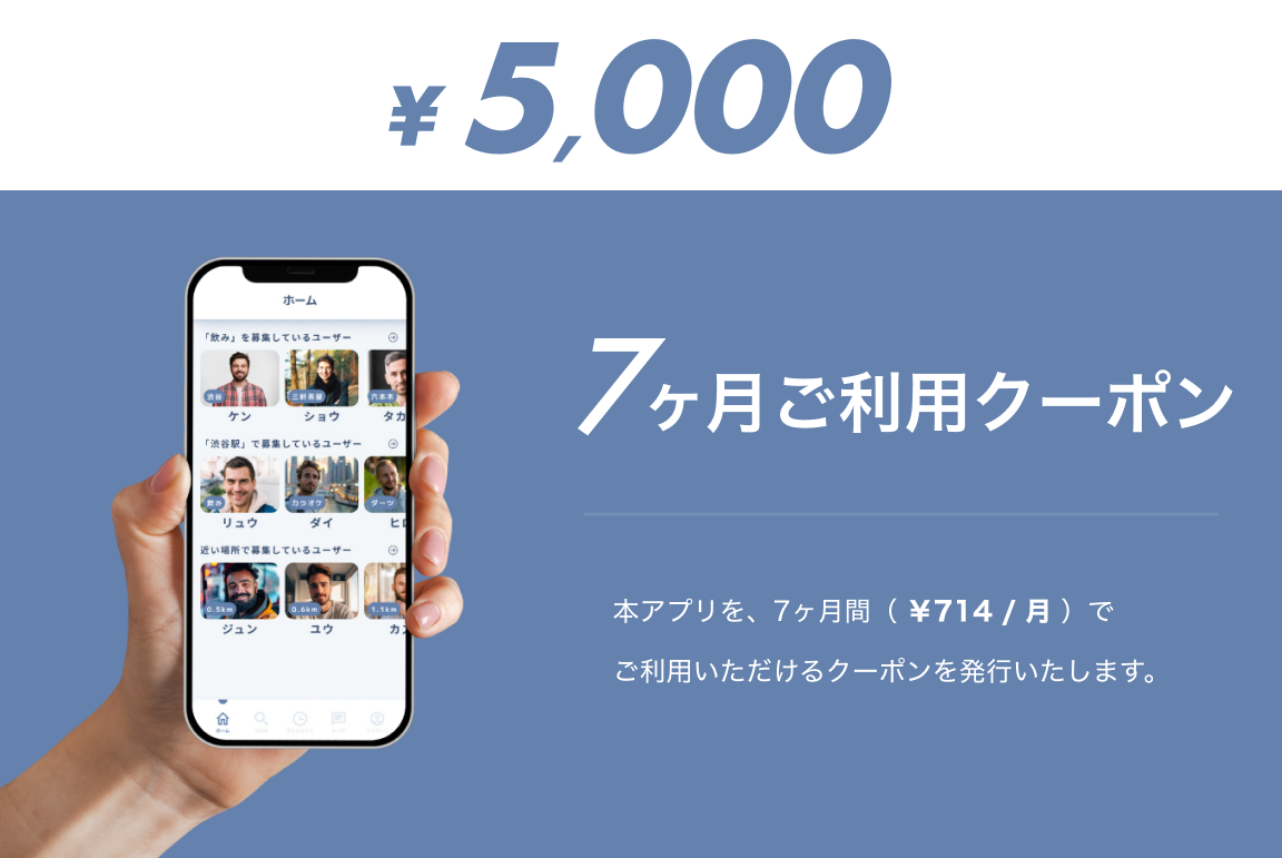 ■本アプリを7ヶ月間(¥714 / 月)ご利用いただけるクーポンを発行いたします。