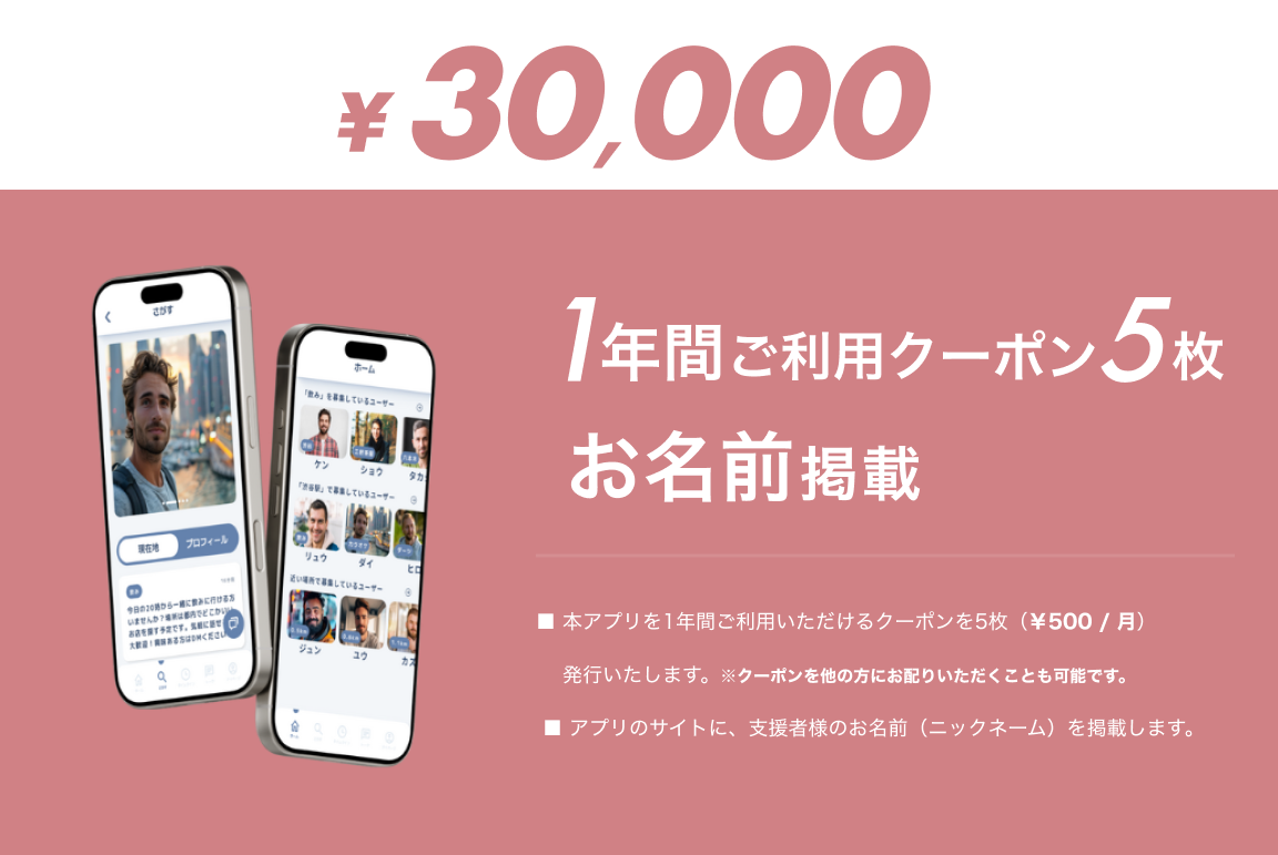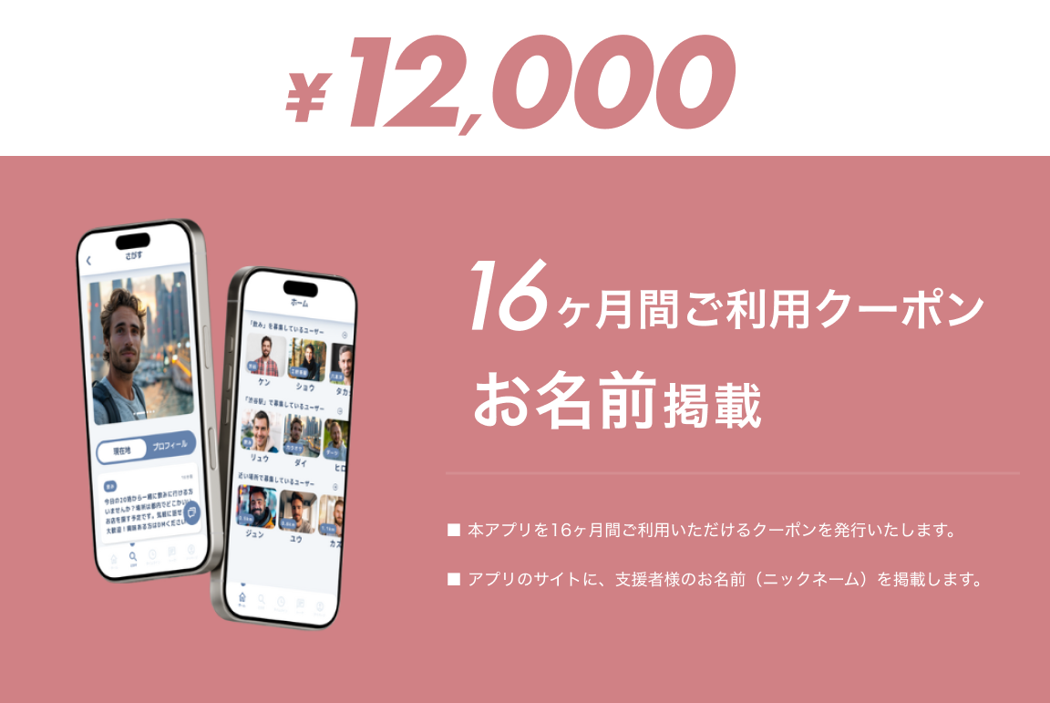 ■アプリのサイトに、支援者様のお名前(ニックネーム)を掲載します。