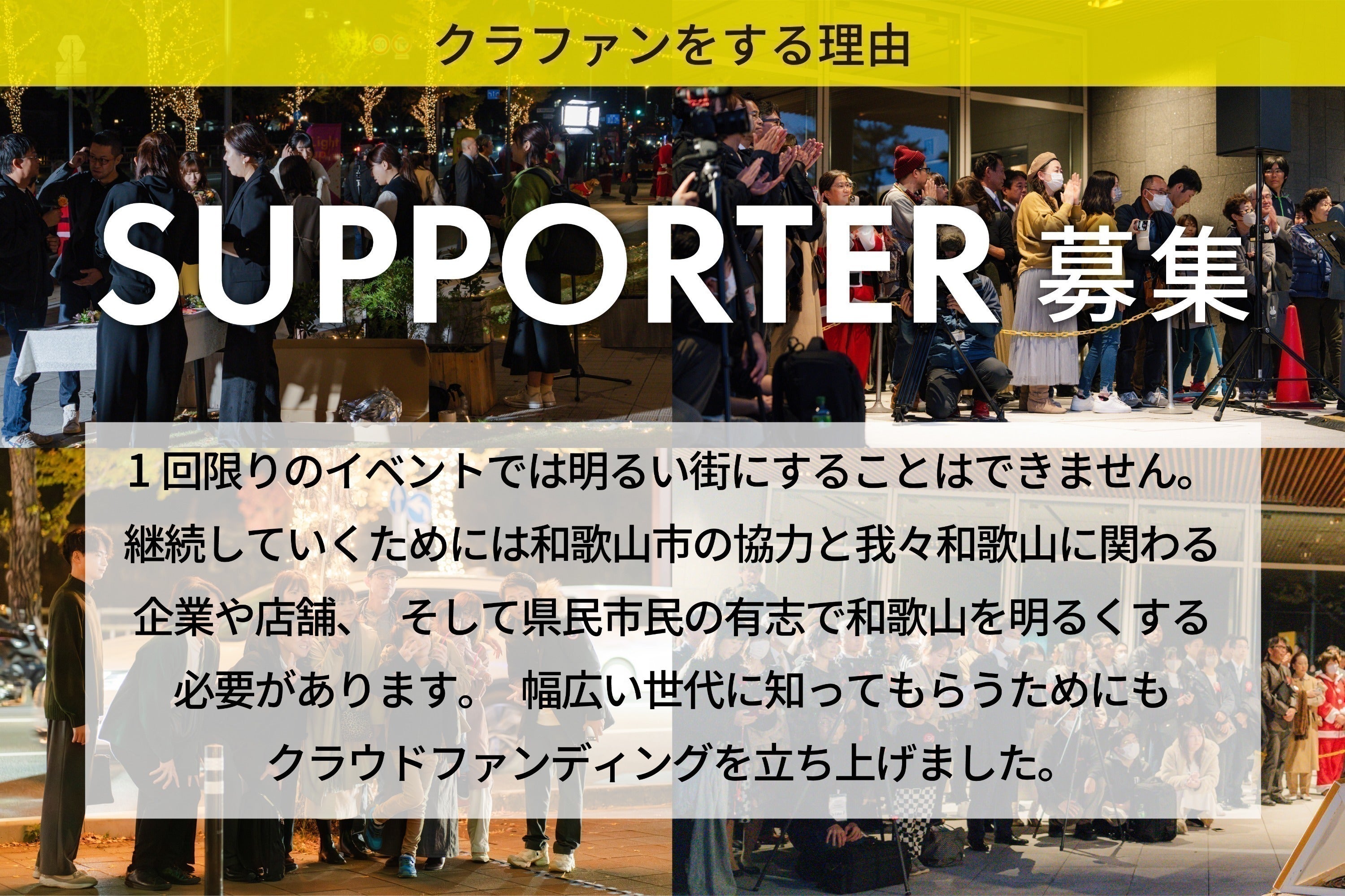 去年から始まったこのプロジェクトは今年で2回目。初年度は皆さまのご協力のおかげで、大盛況で終えることができました。想定外の企画や前向きな意見をいただくことで、イルミネーションをきっかけに多くの方々が「もっと明るい和歌山」になることを期待していると強く感じました。
