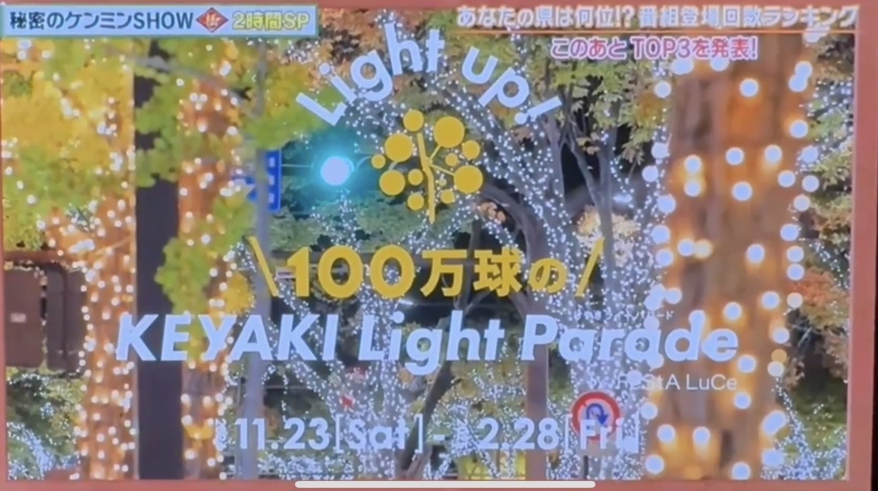 2025/01/10 18:40昨日放送された秘密のケンミンSHOWにて、けやきライトパレードが取り上げられました!番組登場回数が最下位となってしまった和歌山県の状況を打開するイベントとして、和歌山駅前が華々しく彩られているイルミネーションとして紹介されました!イルミネーションストリートとしては、東京の表参道よりも大阪の御堂筋よりも電球数が多い「日本一」のイルミネーションであることも堂々と取り上げられました!!!最後にはけやきライトパレードが「和歌山県民にとって一番の誇りである」とも言われていました(うれしい!)けやきライトパレードが和歌山県内だけでなく全国で紹介されたことで、「和歌山にはけやきライトパレードがあるんだぞ!」と誇りに思ってくれる人が増えていくと嬉しいなと思います。今後もけやきライトパレードの魅力が和歌山から全国へ発信されていくよう、応援・ご協力のほどよろしくお願いします! もっと見る沢山のご支援ありがとうございました!