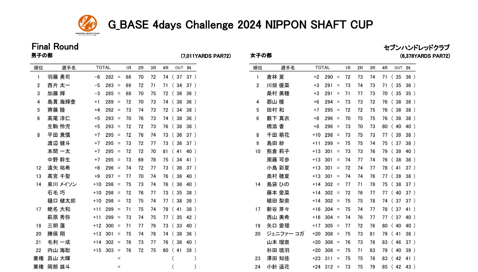 <G_BASE 4days Challenge 2024 NIPPON SHAFT CUP>について