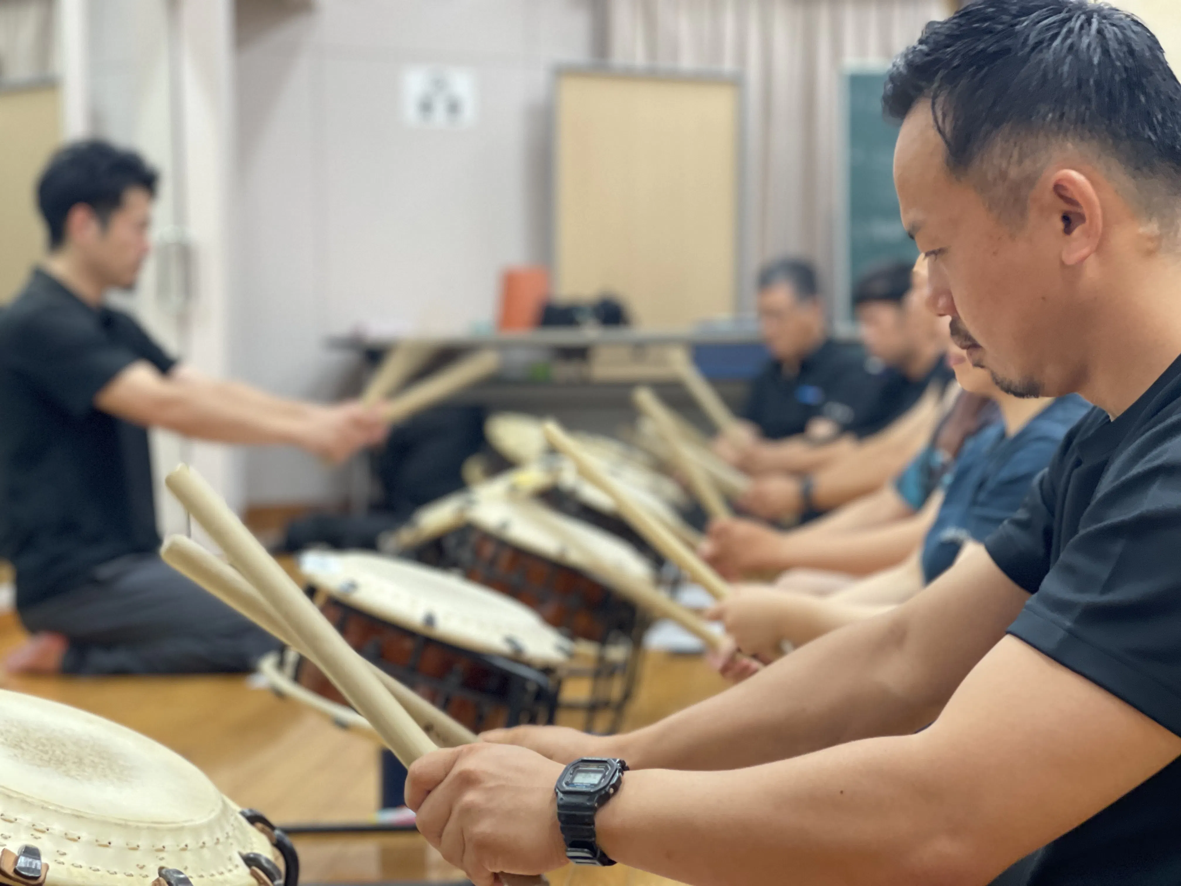 すでに7月中旬より、志賀町にて、和楽団ジャパンマーベラス西口団長から志賀の太鼓連絡協議会を通じて結成されたチームの方々への太鼓指導は始まっており、日々本番へ向け、練習を行っております。