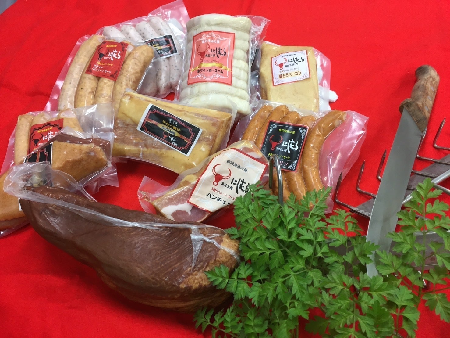 工場で作ったスモーク品は、当店の前菜はもちろん、店頭販売や、石川県内さまざまな旅館、ホテルなどに石川県のブランド豚(能登豚)、ブランド牛(能登牛)、野菜(加賀野菜)を用いて作るスモーク品やカレーなどの食肉加工品を卸してきました。