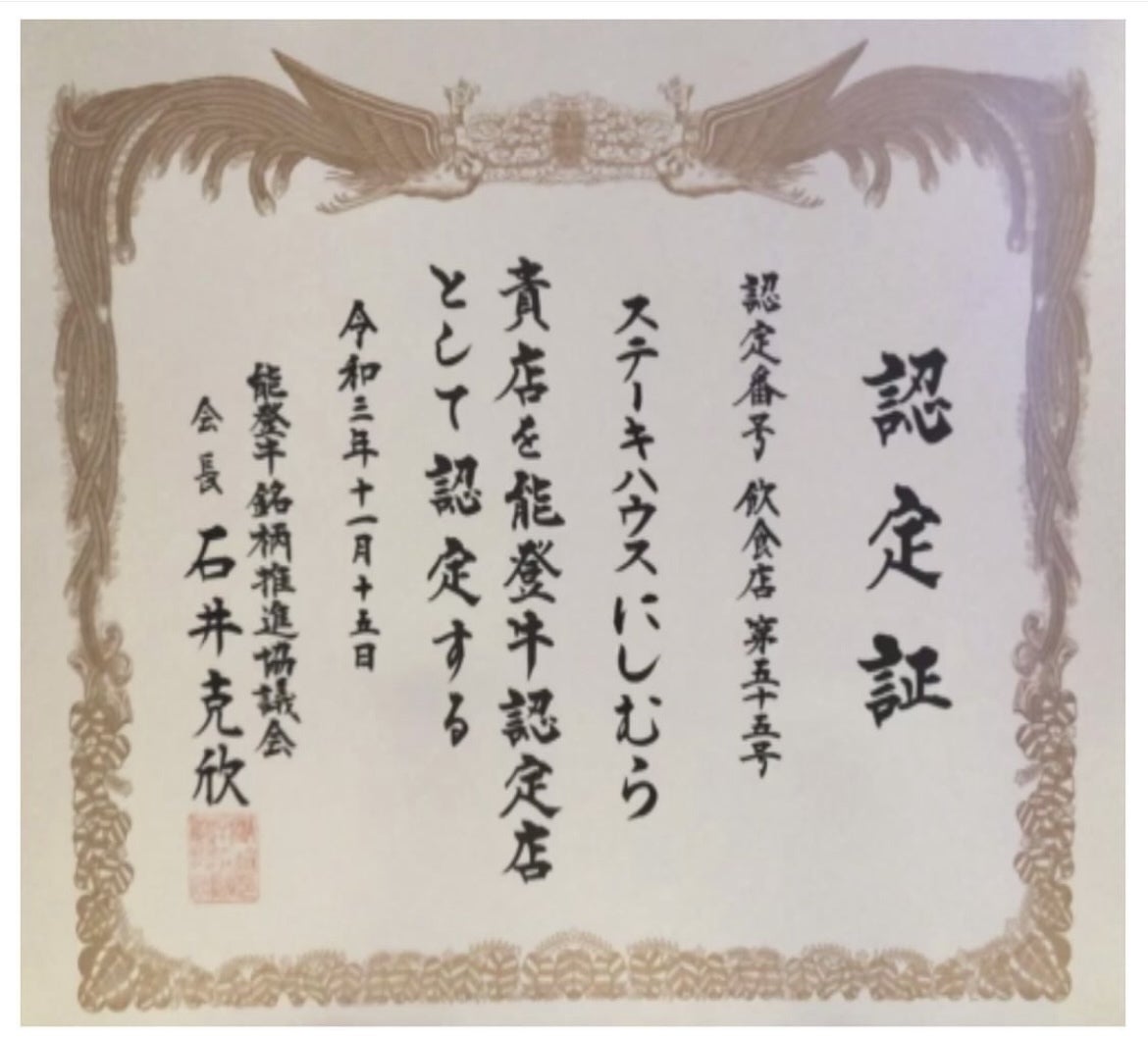 おかげさまで、能登牛に関しては、石川県でも一定の基準をクリアした店舗のみが認定して頂ける、能登牛認定店になることが出来ました!