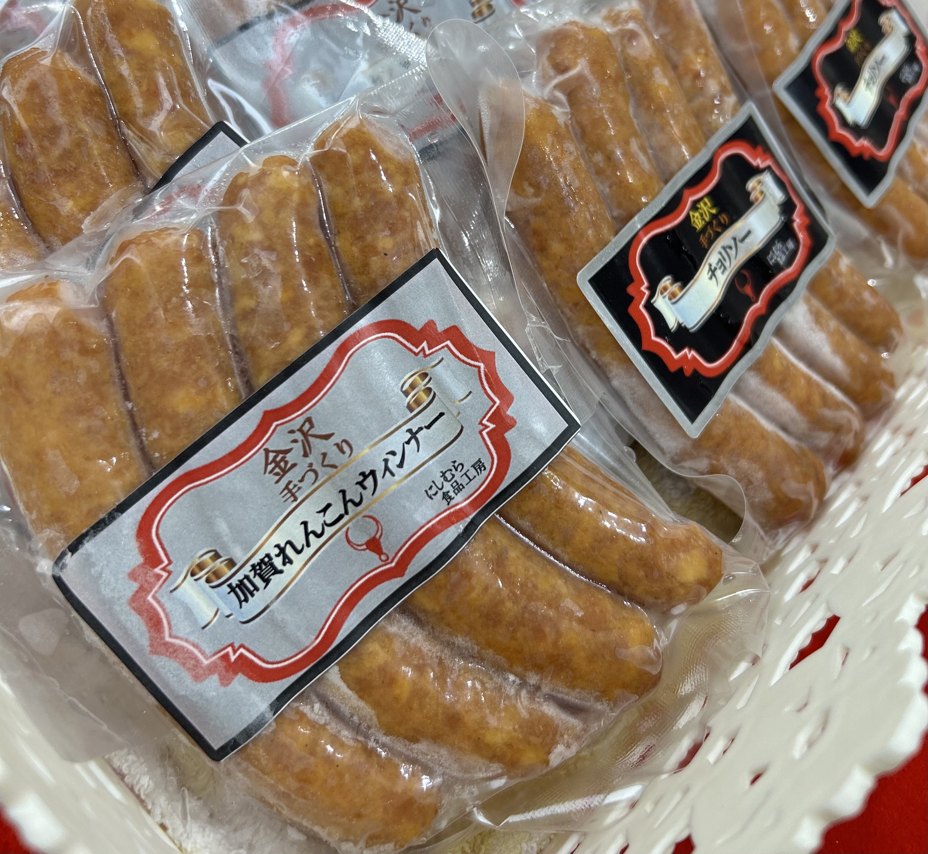 ↑加賀野菜、加賀レンコンのウインナー