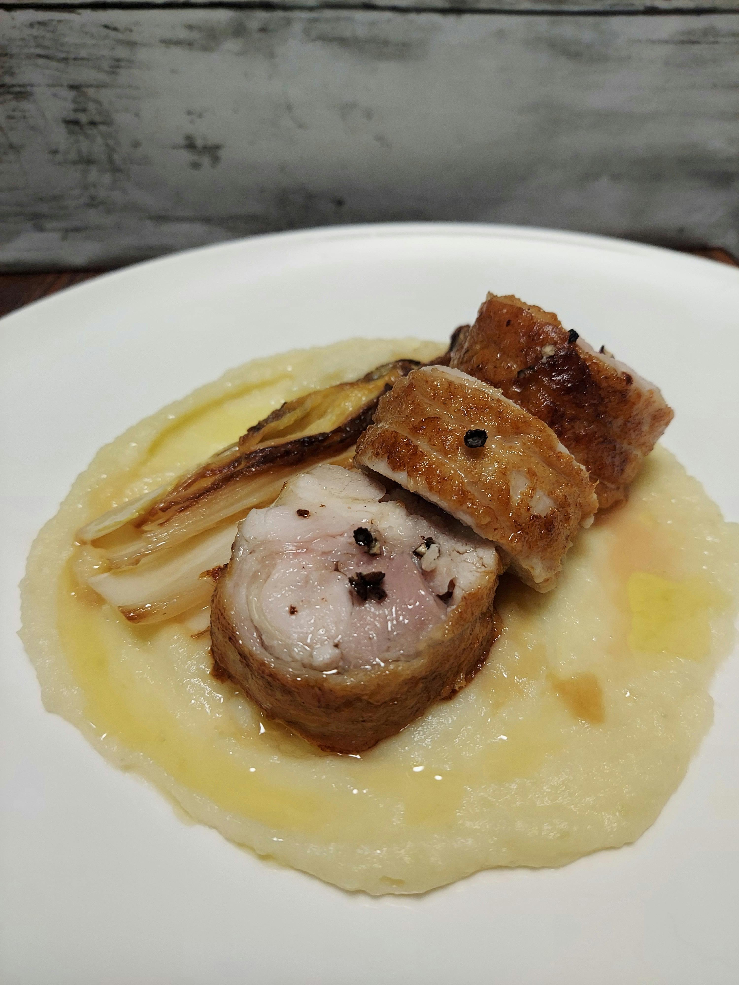 鶏モモ肉のロートロ、白菜のヴィネガーソテー添え