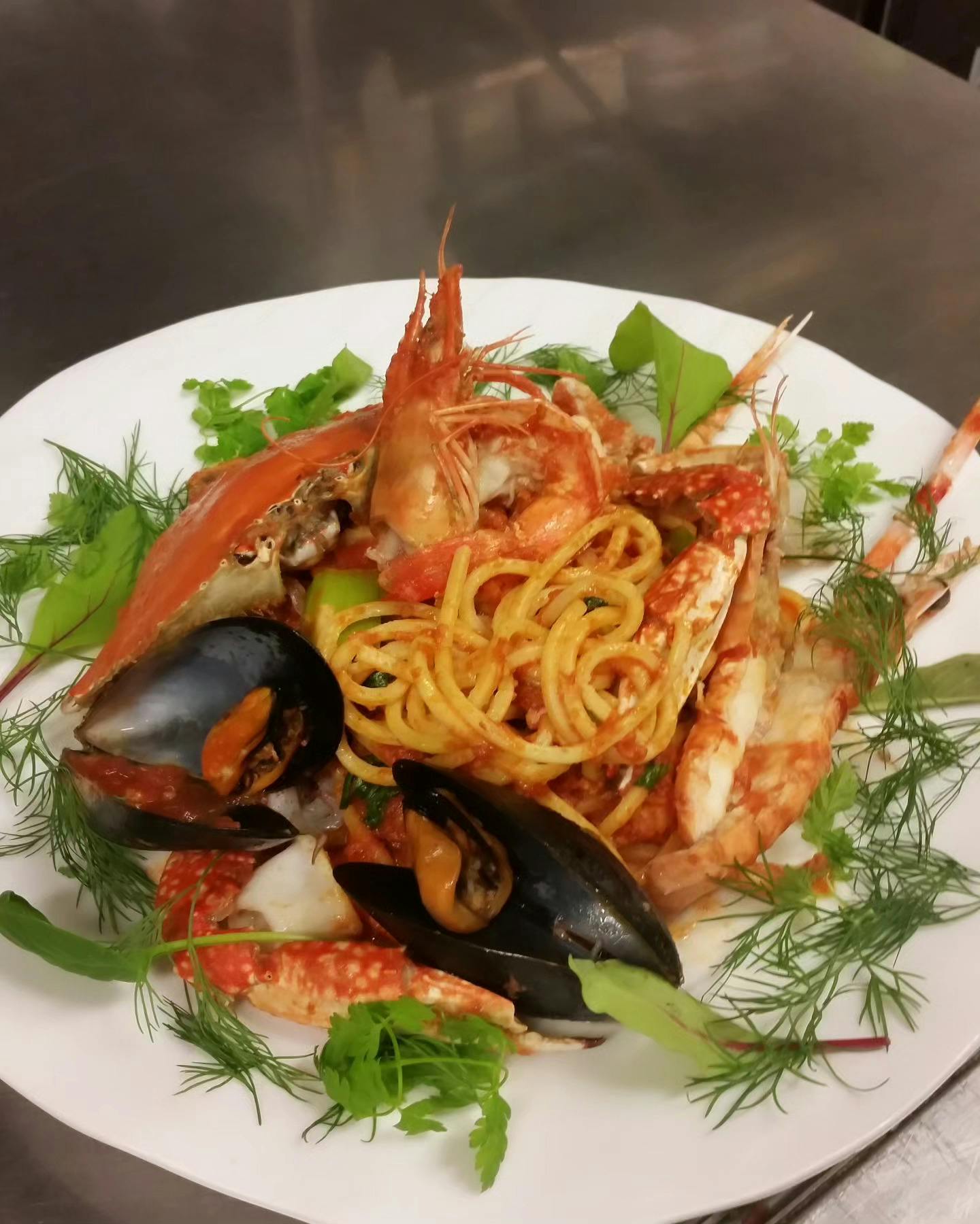 今日は昔クリスマス限定で作った、ワタリガニのペスカトーレ、クリスマスリース仕立て