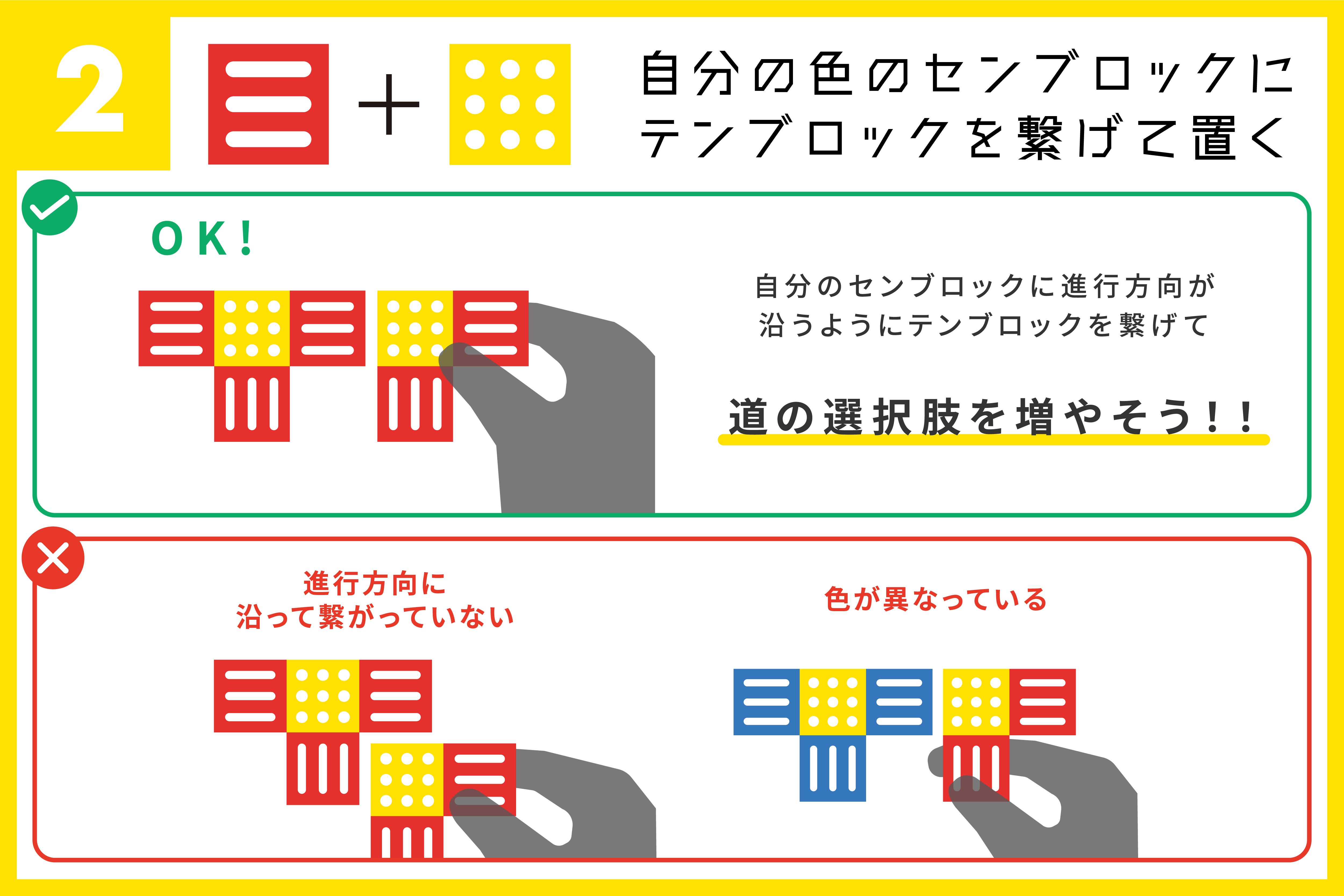 ピースの形やピースの中のテンブロック、センブロックの配置が鍵となり、様々なゲーム展開を楽しむことができます。