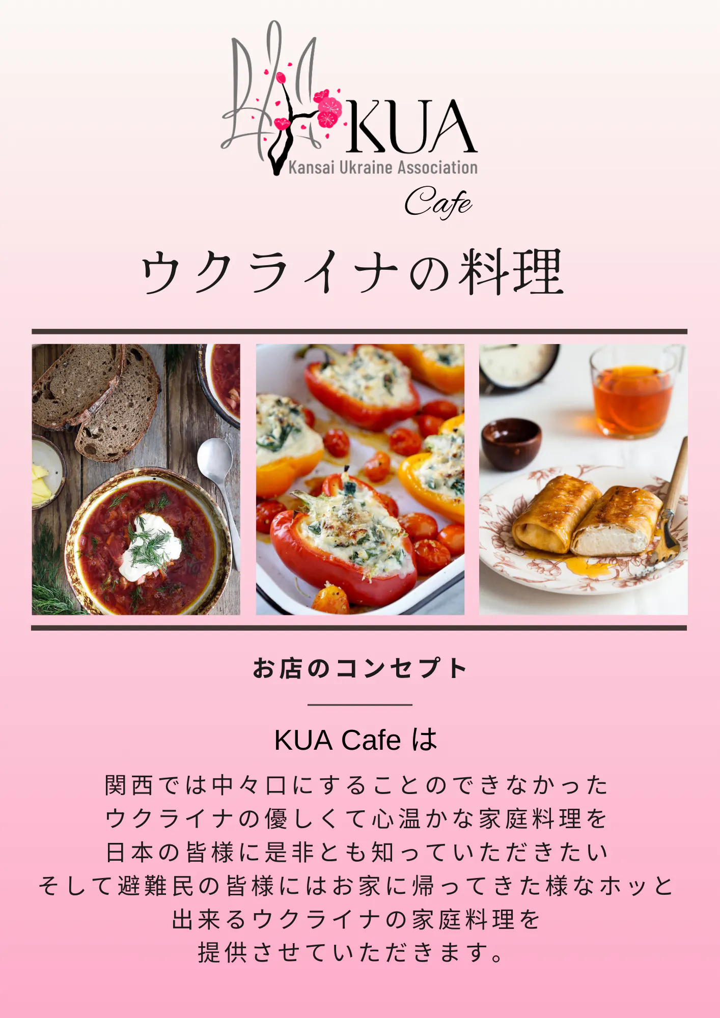 KUAcafeではウクライナの優しくて心温かなウクライナの家庭料理を