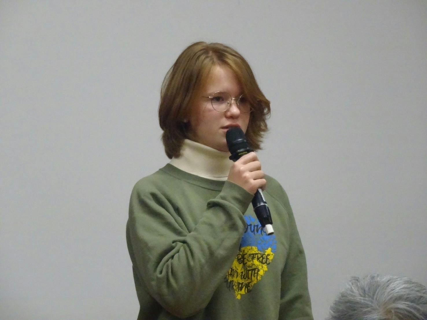 避難民のマリア様は避難されてきた現状を来てくださった皆様の心に訴えました。まだ中学生の彼女の心の声はとてもとても力強く、ウクライナの未来についての希望をしっかりと伝えていただいた姿に心がうたれます。