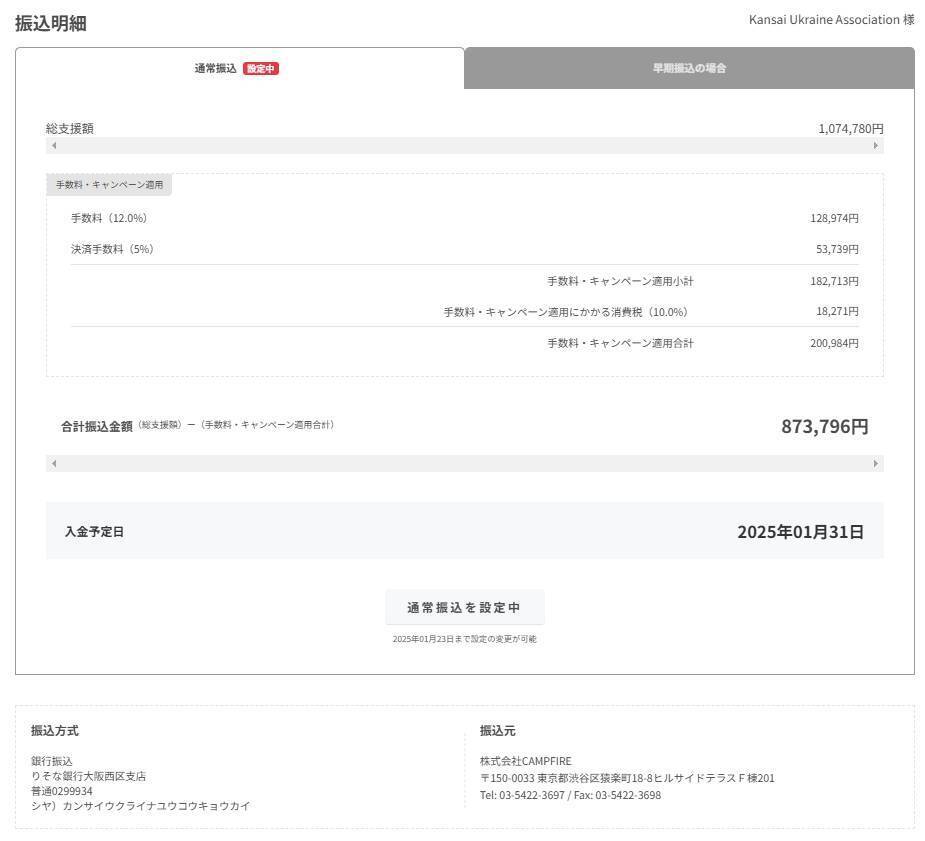キャンプファイヤー手数料(12%) 128,974円