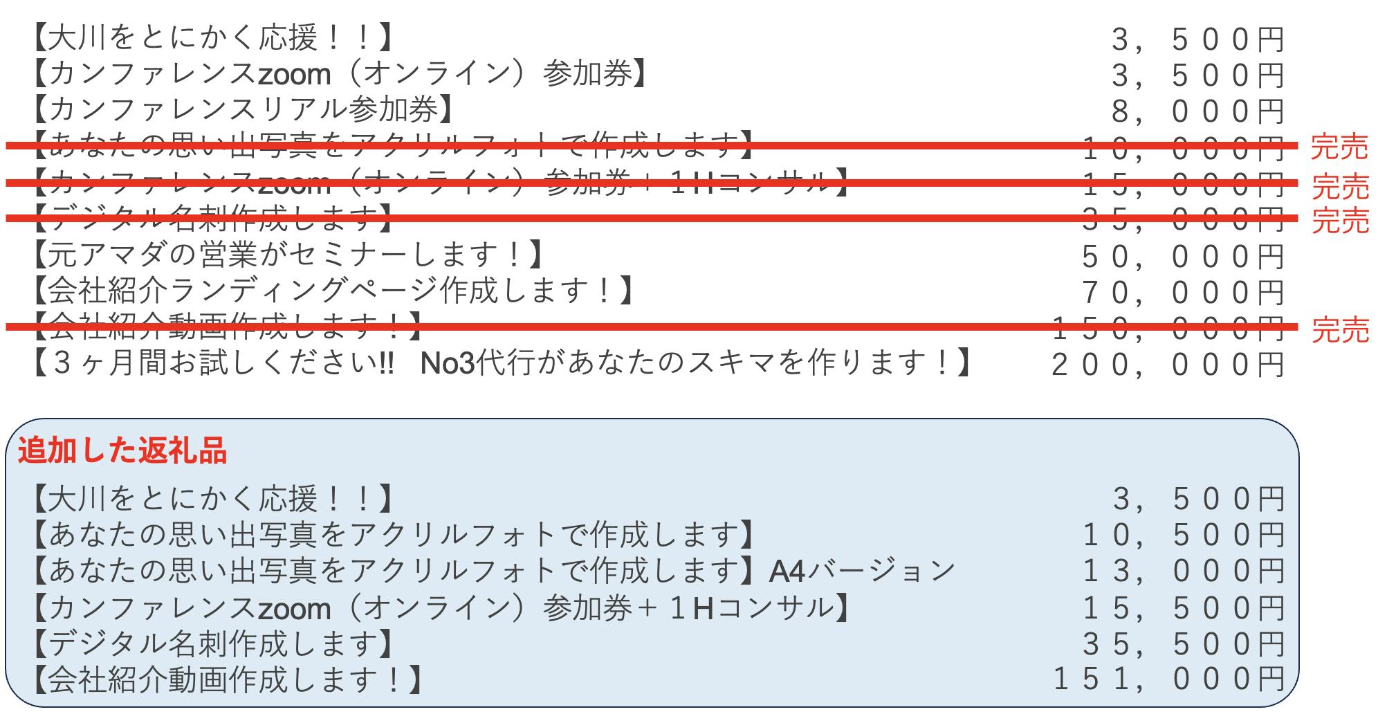 このリターンは、私がクライアントさんにお伺いし、実際に業務を遂行している内容と同様の事を3ヶ月のお試しとしてリターン設定させて頂きました。