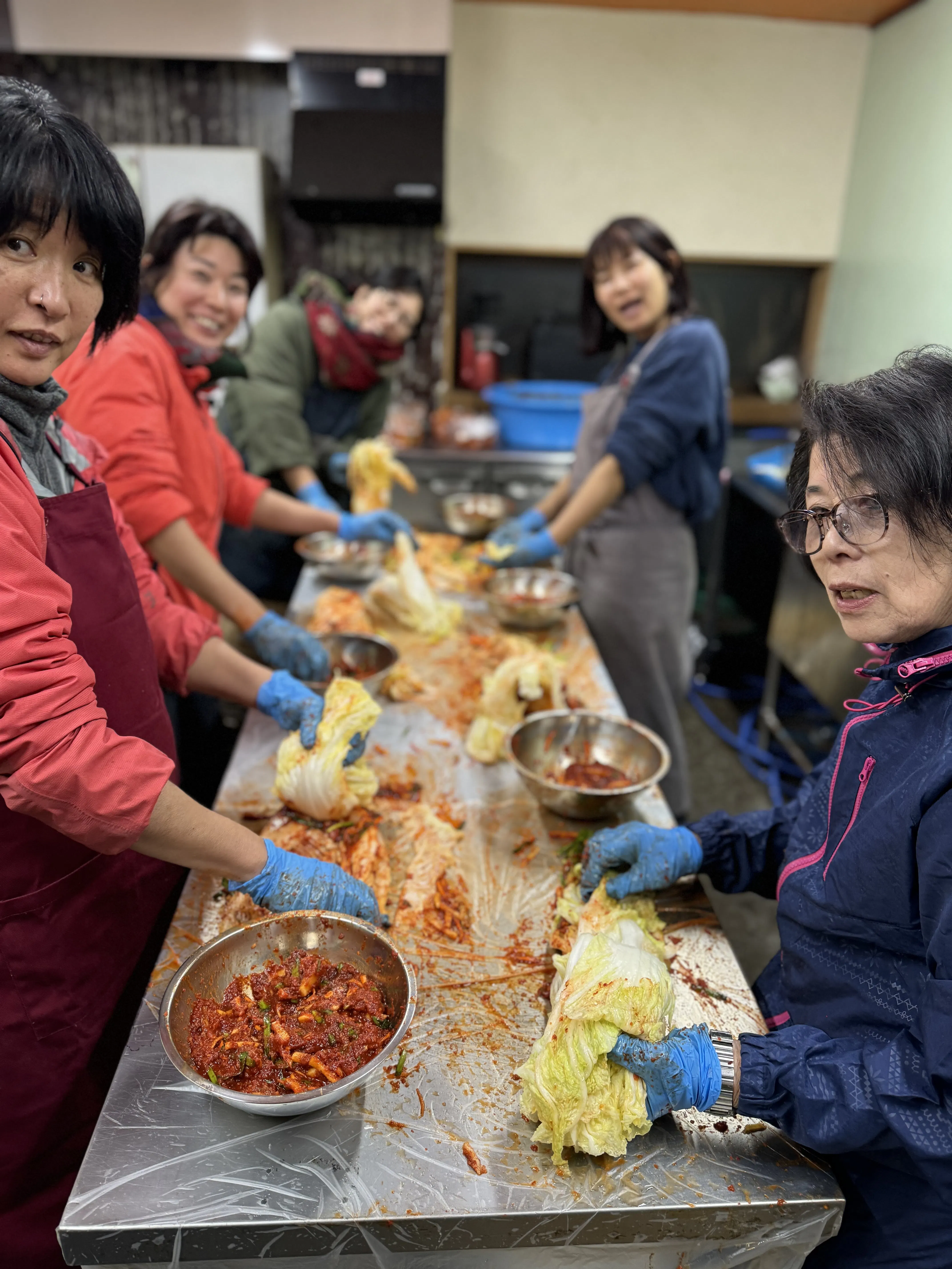 キムジャンです(キムジャンとは韓国の文化遺産でその冬に食べるキムチを近所の人や、友人、家族等皆んなで作る事です)