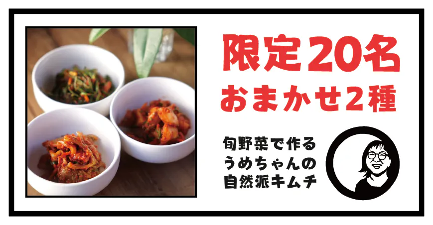 皆様のお陰様で73%達成しました本当にありがとうございます!!1月13日までですキムチを全国の皆様に毎月お届けする定額で毎月お届けするサービスをサブスクと言いますお申し込みしていただくと、毎月キムチが届く仕組みです。地元の農家さんの農薬不使用のキムチを自慢の添加物の入っていないヤンニョムで漬けたキムチ旬の野菜で漬けるキムチは、白菜だけでないキムチ達今の旬は菊芋です大根より甘い菊芋は、カクテキにするとめちゃくちゃ美味い!何故か土臭い特徴もなくなります!これからの冬の予定は長ネギサラダケールブラックケール白菜菊芋ひなづる大根など予定していますお楽しみに♪皆様是非、引き続きクラウドファンディングのシェア、拡散、応援宜しくお願い致しますhttps://camp-fire.jp/projects/799257/view?utm_campaign=cp_po_share_c_msg_mypage_projects_showこちらをコピペするか、プロフィールにリンクが貼ってあります