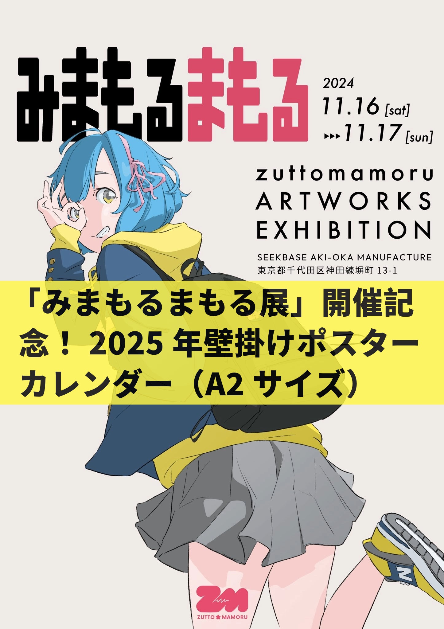 イラストレーター・mamoruさん描き下ろしの展示会メインビジュアルをベースに、カレンダー要素を加えた特別デザインです。