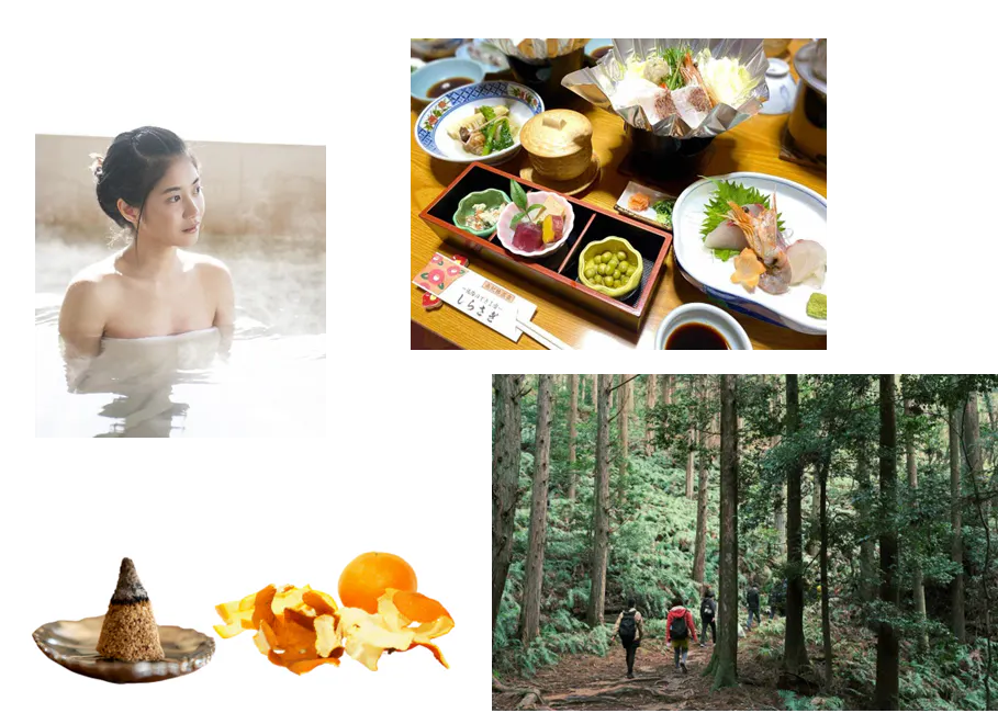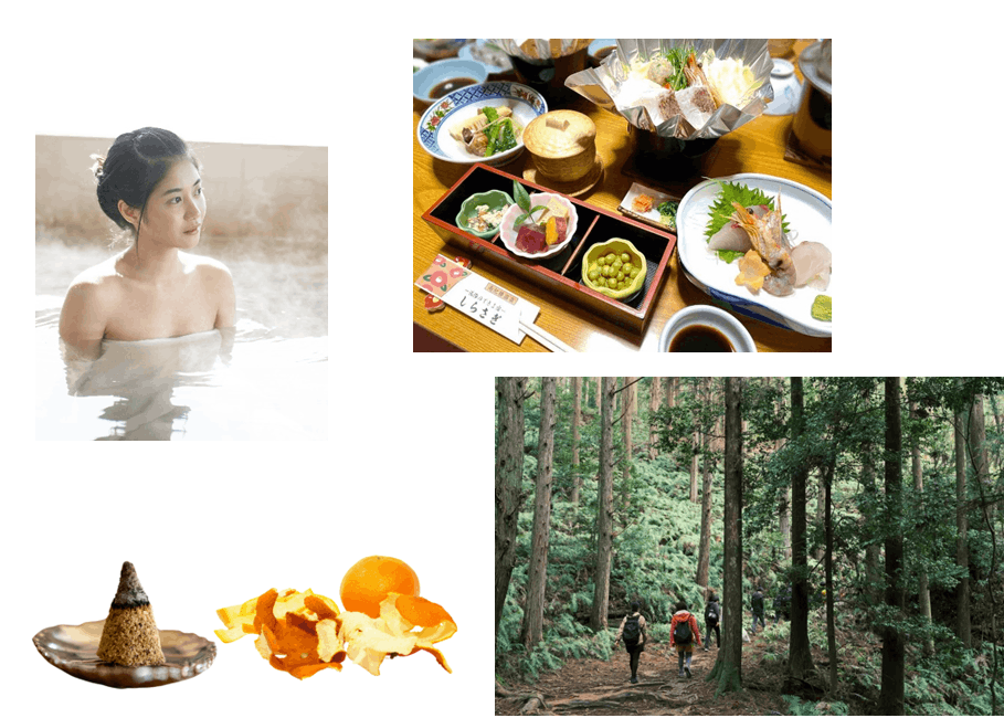 今回はまずパイロットプロジェクトとして、2泊3日で湯治、熊野古道探索、ミカンのお香作りを通して自分と向き合える湯治体験を10名様限定でご用意いたしました。湯治は本来数週間という長期間にわたって行うものですが、忙しい現代人にとってそれだけの長期の休みを取得するのは至難の業です。しかし湯治の片鱗だけでもまずは味わっていただきたいと考え、2泊3日の湯治体験といたしました。