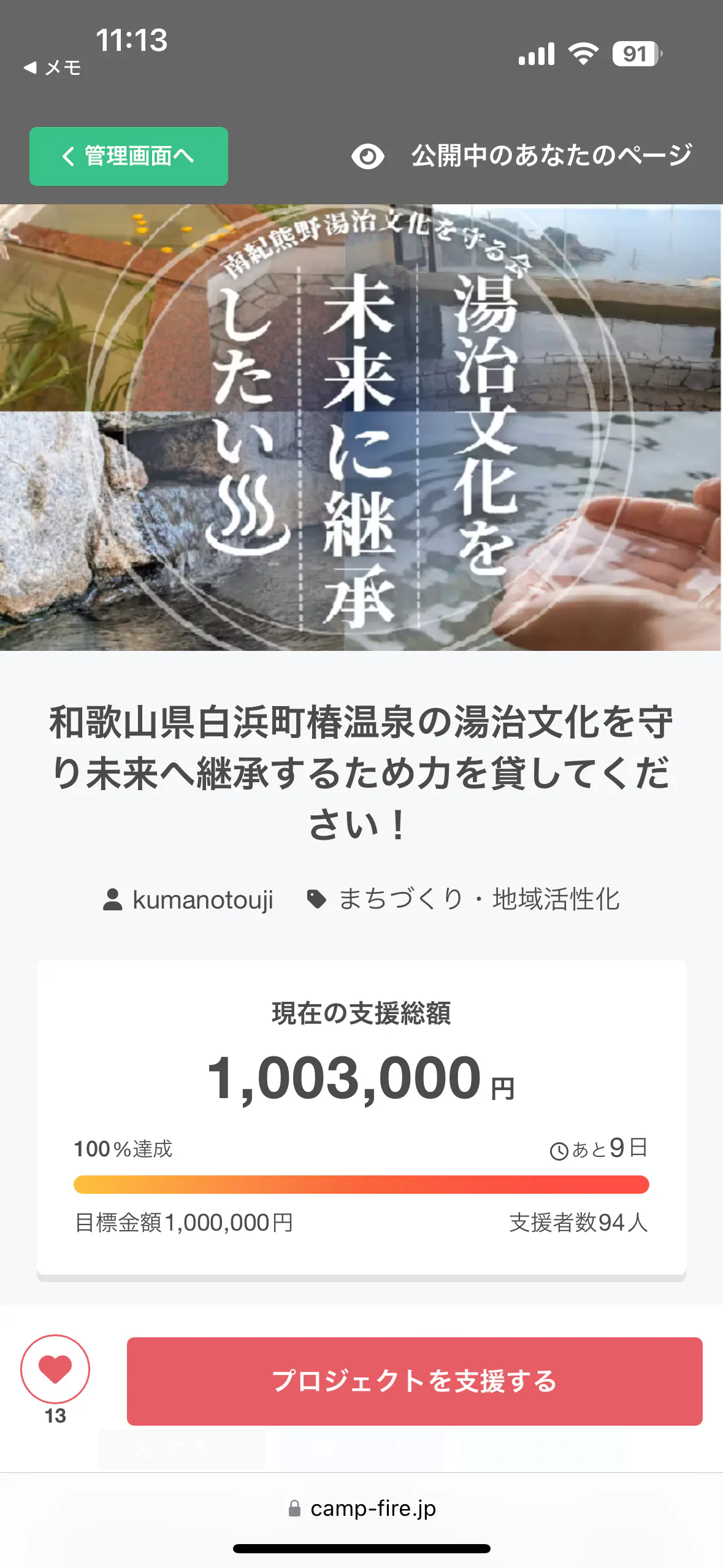 目標金額は1,000,000円