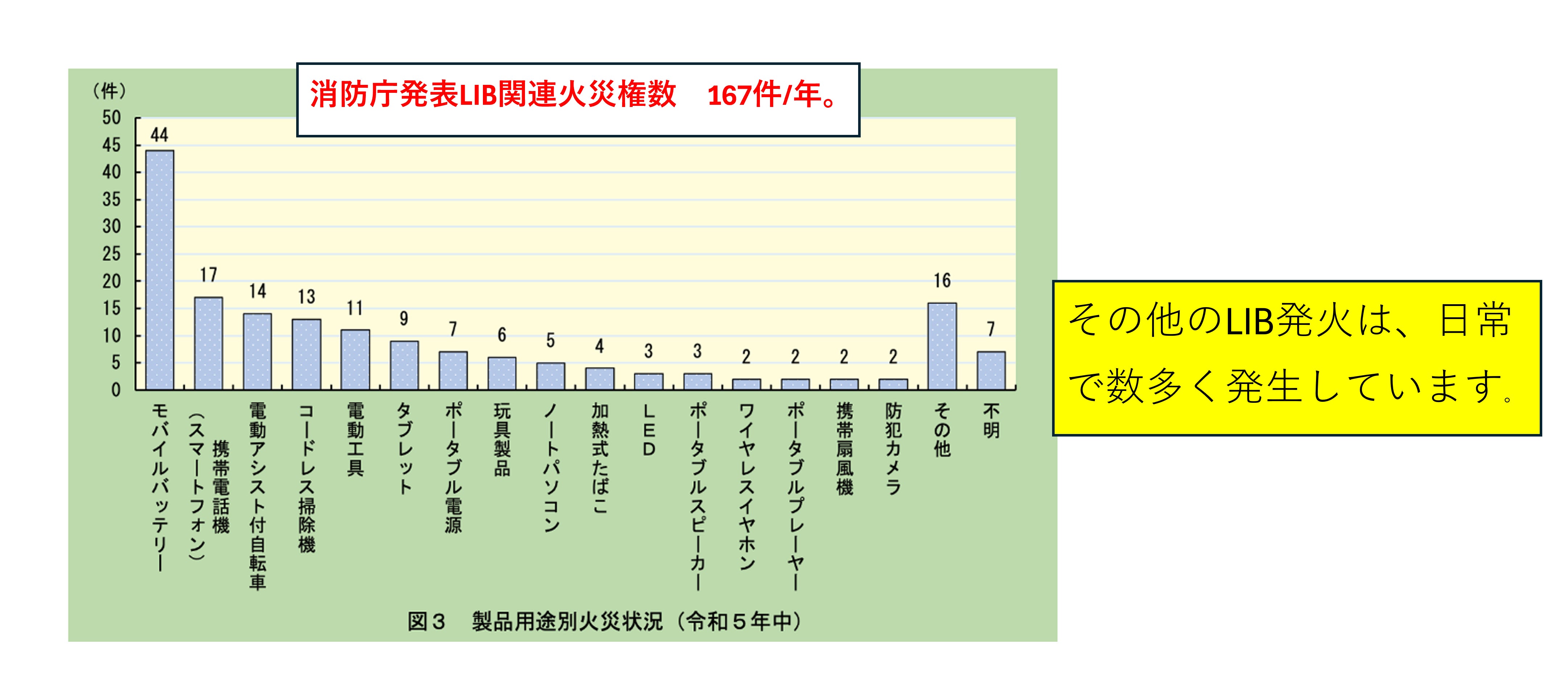 今この瞬間もどこかでリチウムイオン電池(LIB)を搭載した機器、製品の火災、爆発による事故が発生して、怪我、死亡、後遺症等 数多くの障害が発生している現状です。