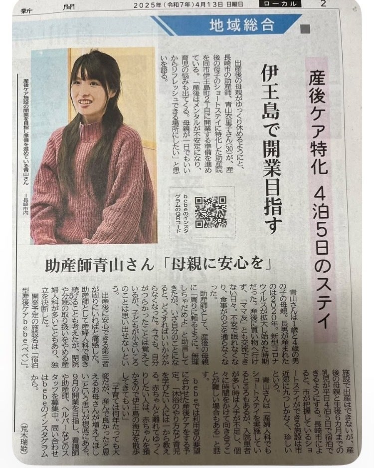 こんにちは、青山と申します。私は長崎市で助産師をしながら地域の健康と福祉に貢献してきました。特に産後ケアの重要性を強く感じており、このプロジェクトを通じて多くのお母さんたちを支えたいと考えています。地域の皆さんと共に、安心して子育てができる環境を整えるための一員として活動しています。