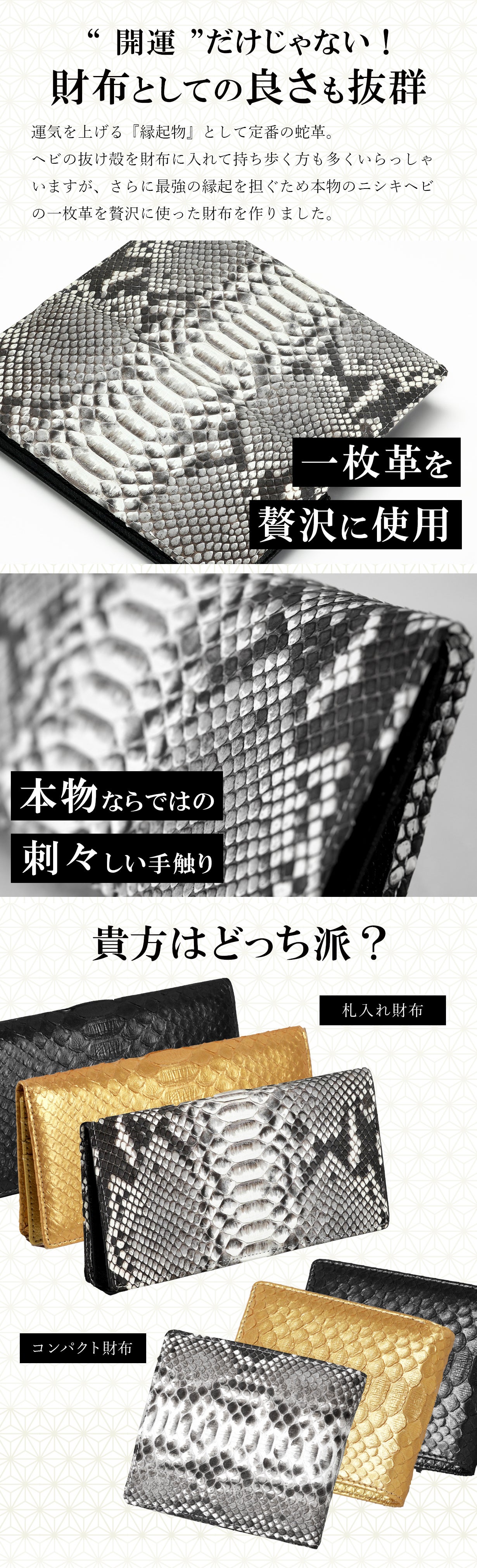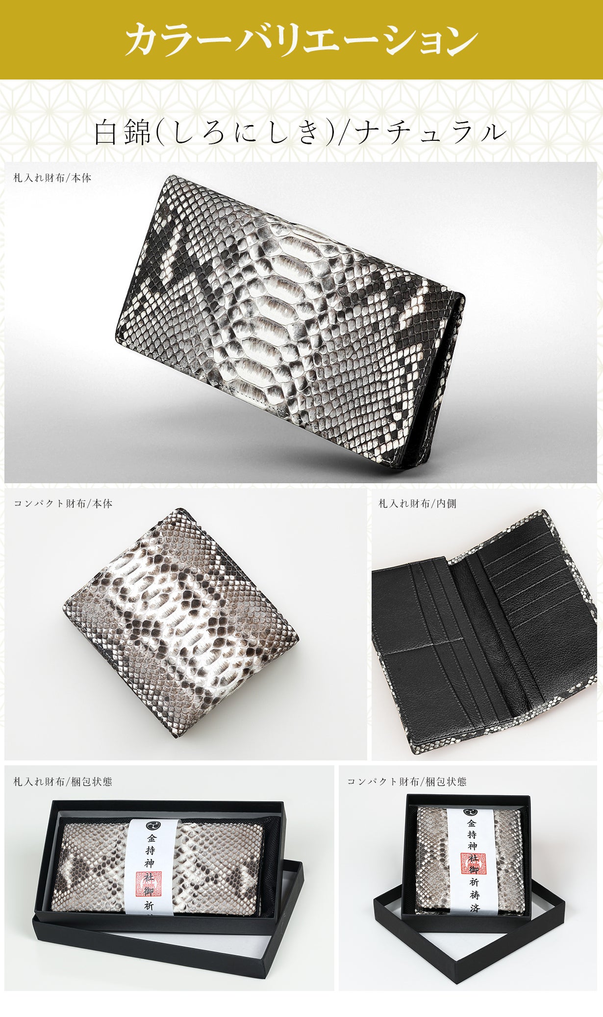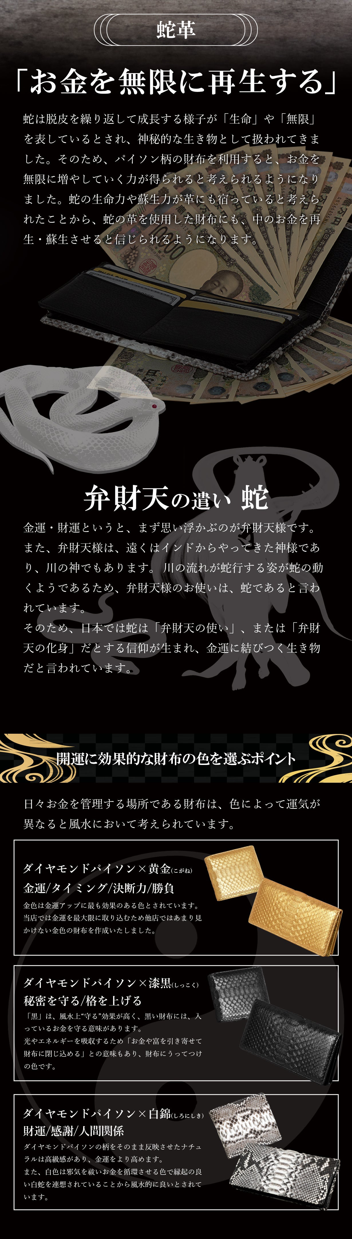 ※染色以外の手を加えていない本物のパイソン皮を使用している為、1点1点、斑紋や色味など微妙に柄が異なります。