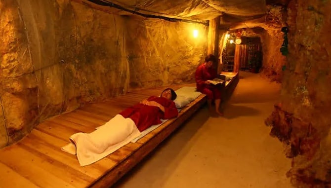 日本で初めての本格的な坑道ラドン浴施設が姫路市安富町に誕生しました。ラドン坑道とは昔は金鉱山だった坑道内にてリラックして寝そべって頂き、坑道内に充満しているラドンガスの中で過ごして頂くものです。岩盤浴のイメージももたれますが、洞内の湿度は暑くなく無理せずにゆっくり坑道浴をしていただけます。