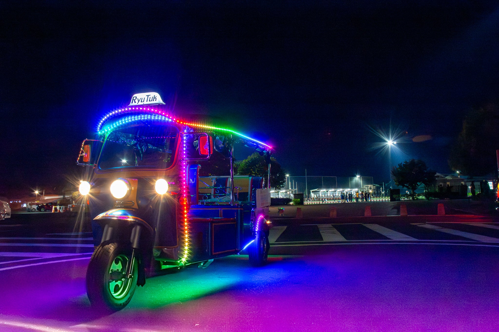 そこで目をつけたのが、東南アジアやタイでお馴染みの三輪車「トゥクトゥク」です。開放感あふれるこの乗り物は、特にお子様や家族連れに大人気であり、地域のイベントや街中で大きな注目を集めることができる乗り物です。このトゥクトゥクをレンタカー事業として展開することで、地域の活性化を図り、同時に企業様の広告宣伝やプロモーションをサポートすることができるのではないかと考えました。