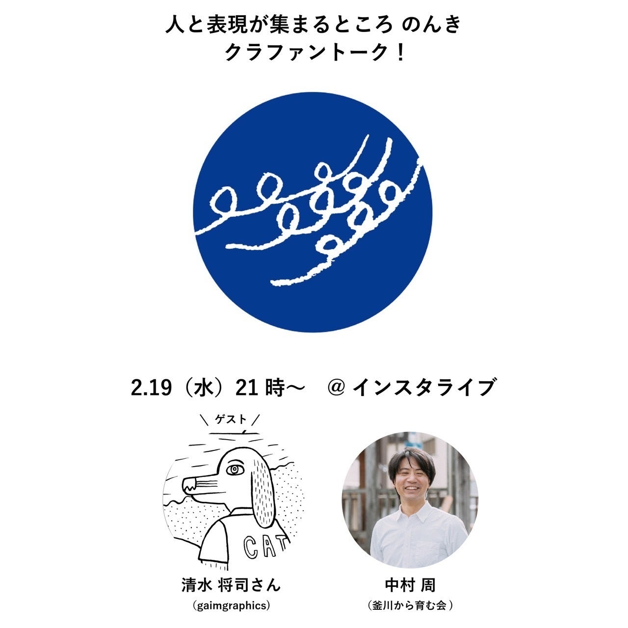 明日2/19(水)21時より、グラフィックデザイナーの清水将司さん(gaimgraphics)と中村(釜川から育む会)がインスタライブにてトークします!
