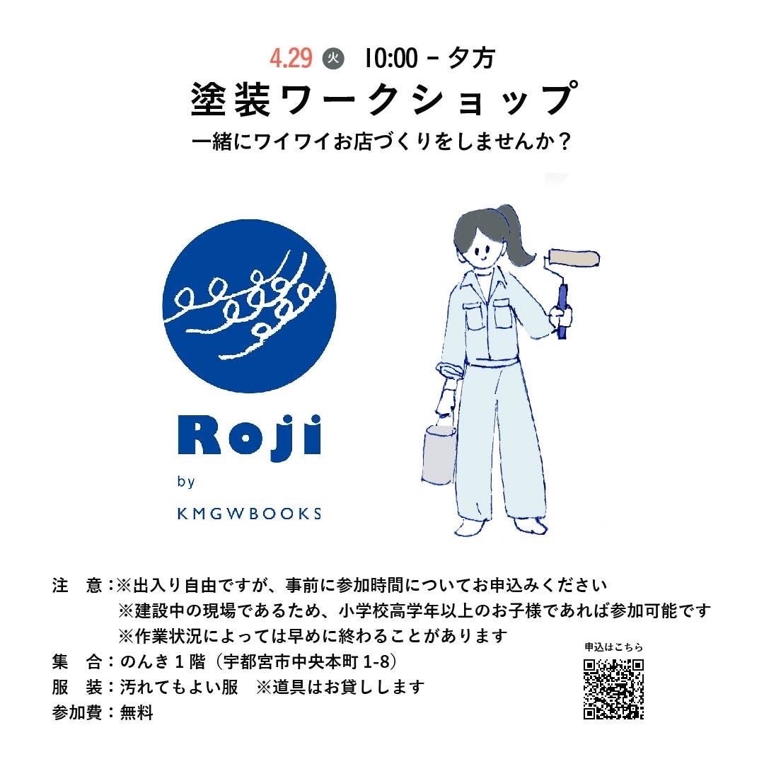 ワークショップでは、のんき1階奥にオープンするRoji by KMGW BOOKSの棚のニス塗りなど、比較的簡単な作業を行います。