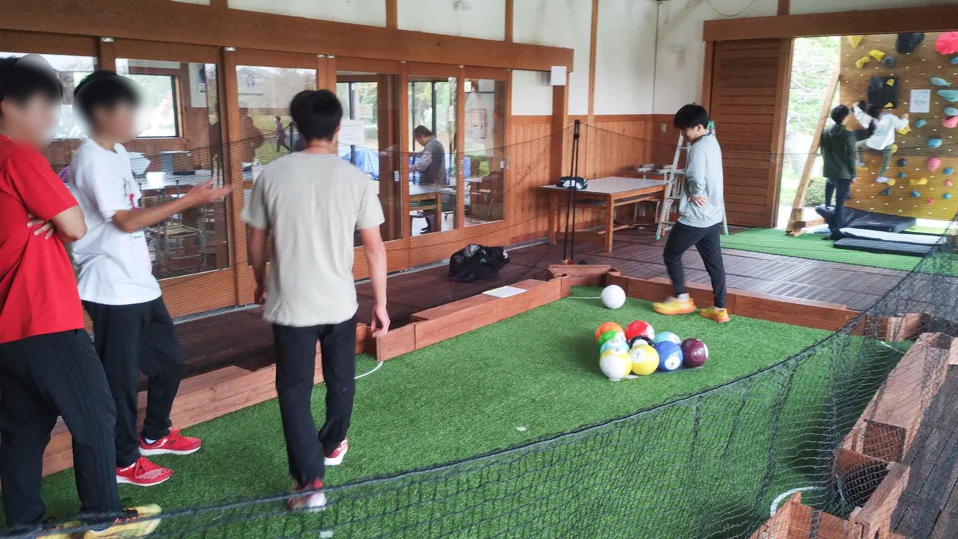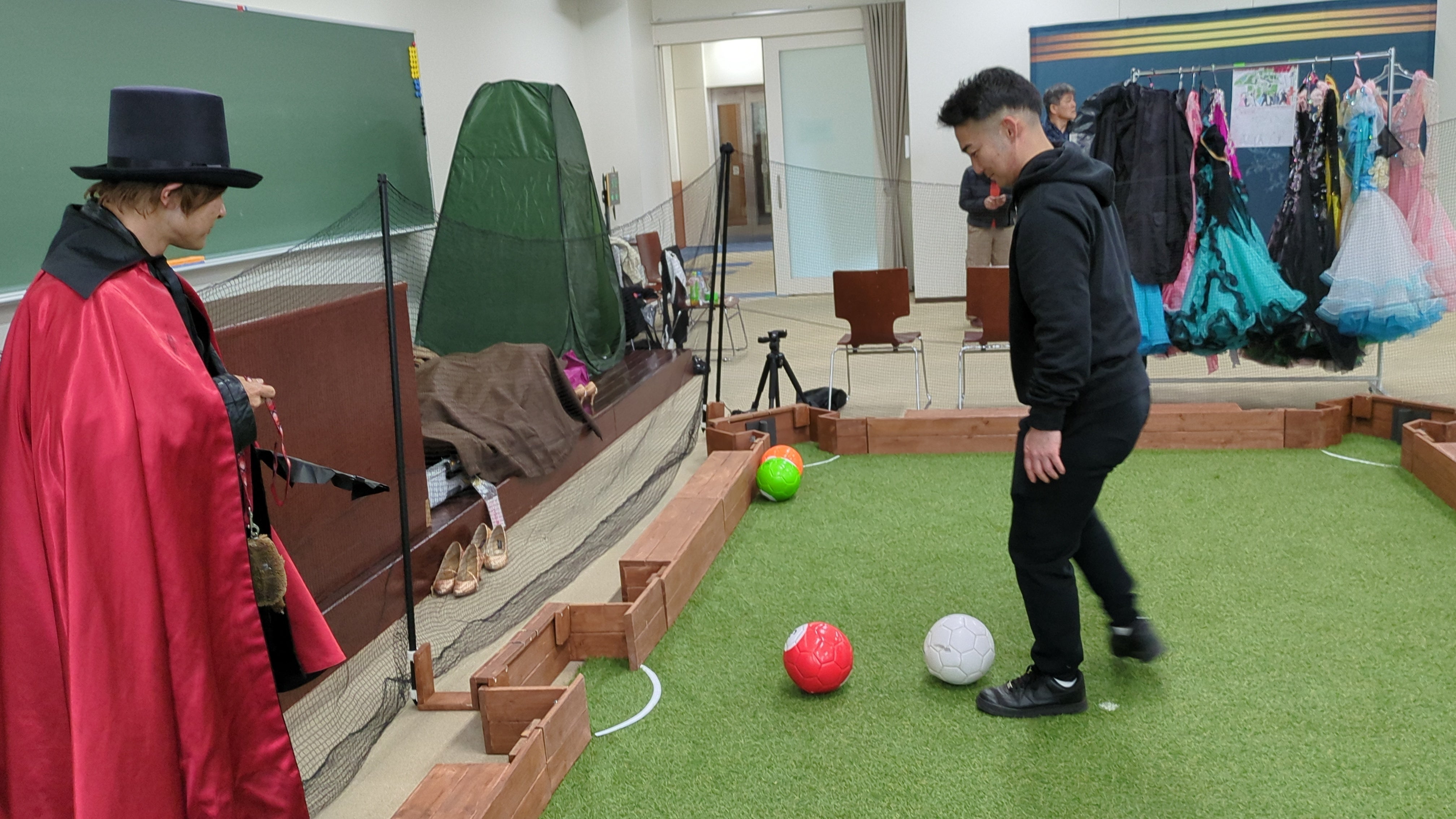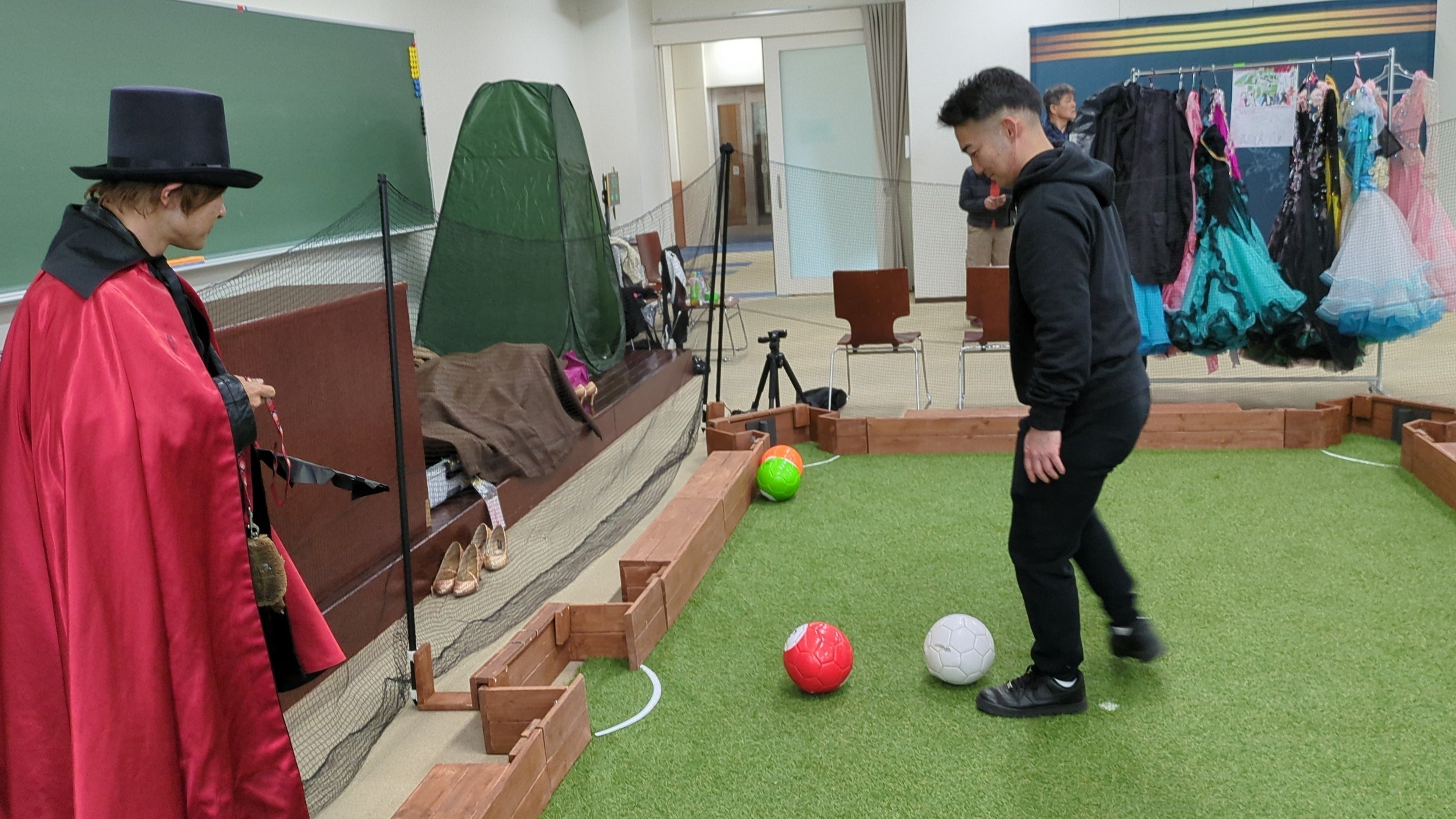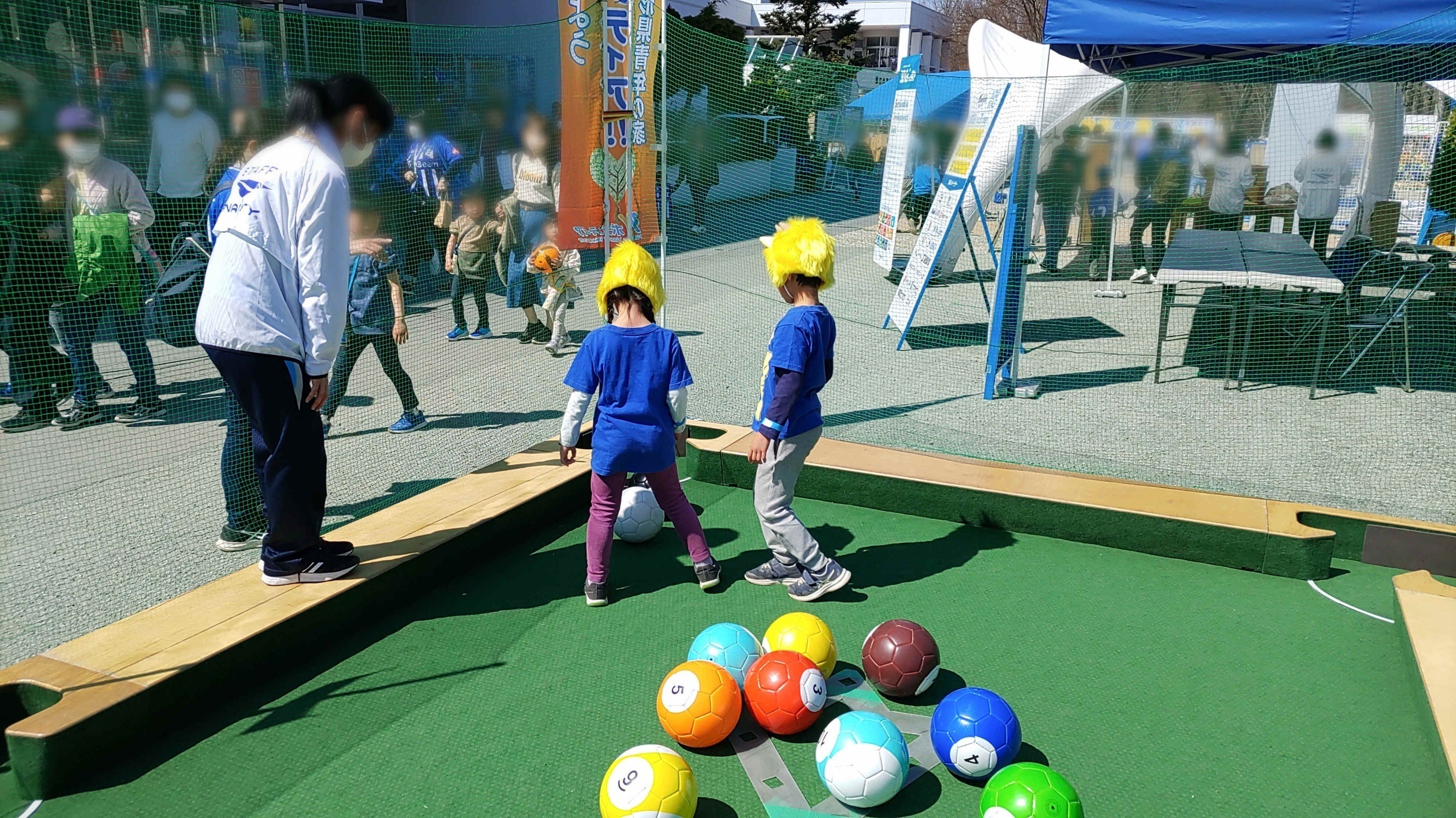 サッカーとビリヤードを組み合わせた新感覚のエンタメ&スポーツで、ビリヤード台を大きくしたようなコートに人間が入って