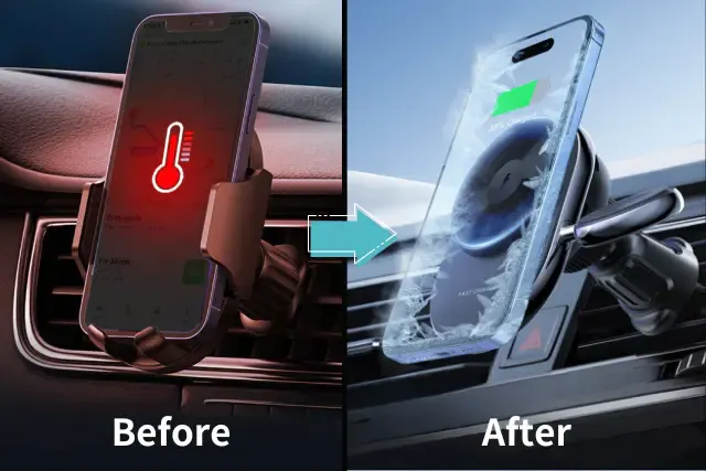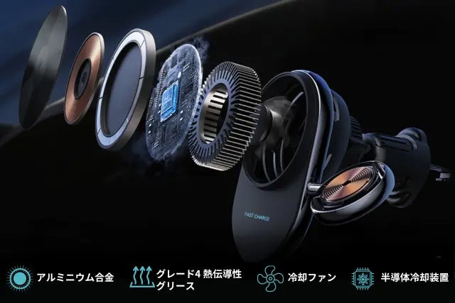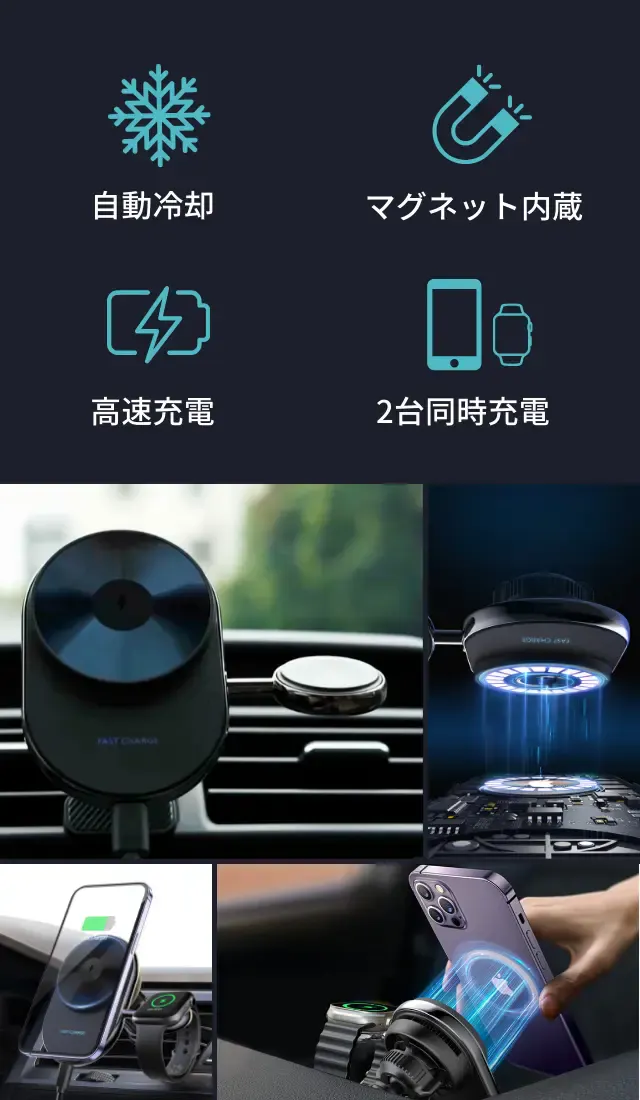 長時間のドライブや夏の暑さでも、冷却機能が過熱を防ぎ、スマホもApple Watchも安心。デバイスに優しく、安全に使える設計です。