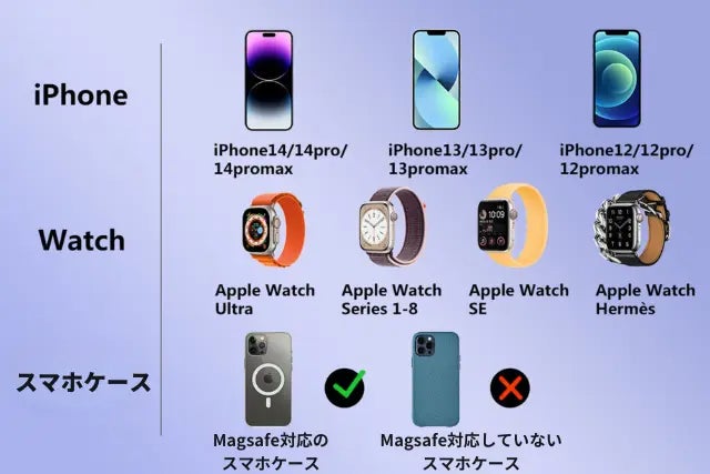 A. Qi規格を採用する全てのワイヤレス充電機能付きスマートフォンでかつMagSafeカバーをしていれば対応します。