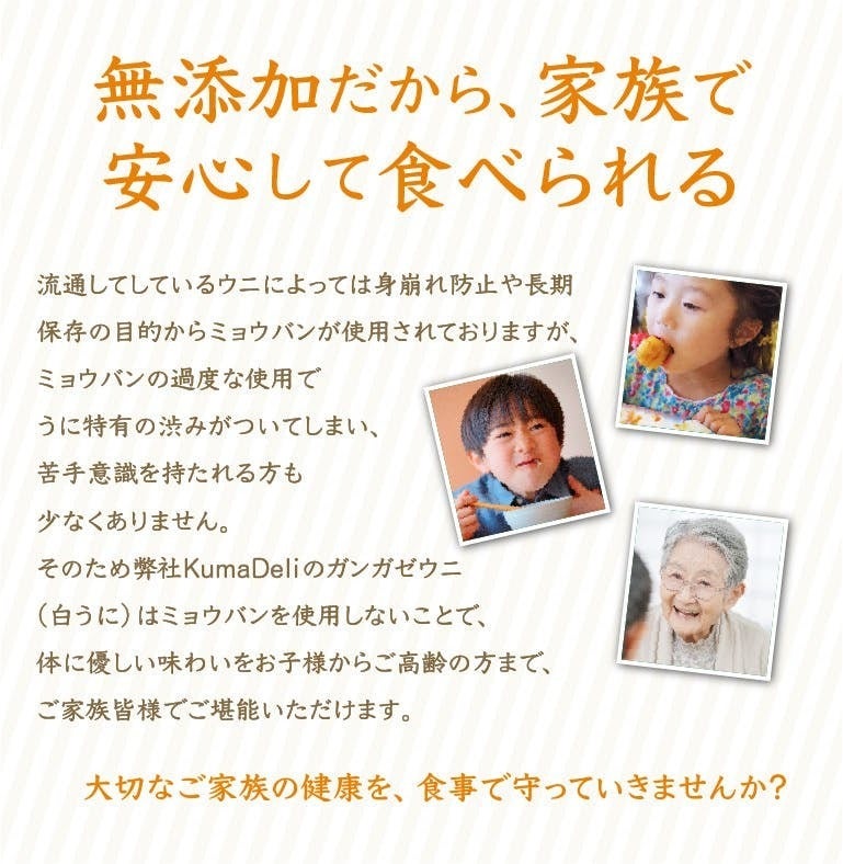 ミョウバンなどの添加物は一切使用せず完全無添加のウニです。