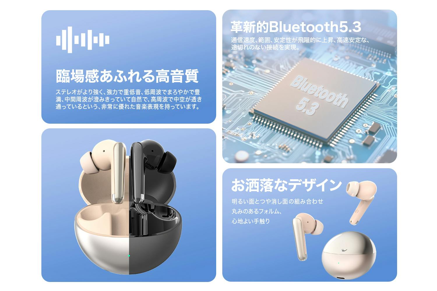 最先端の技術を駆使したワイヤレスイヤホンで、クリアな音質と迫力のある低音を実現します。音楽やポッドキャストを聴く際、音質が何よりも重要です。あなたの耳に心地よい音楽をお届けします。