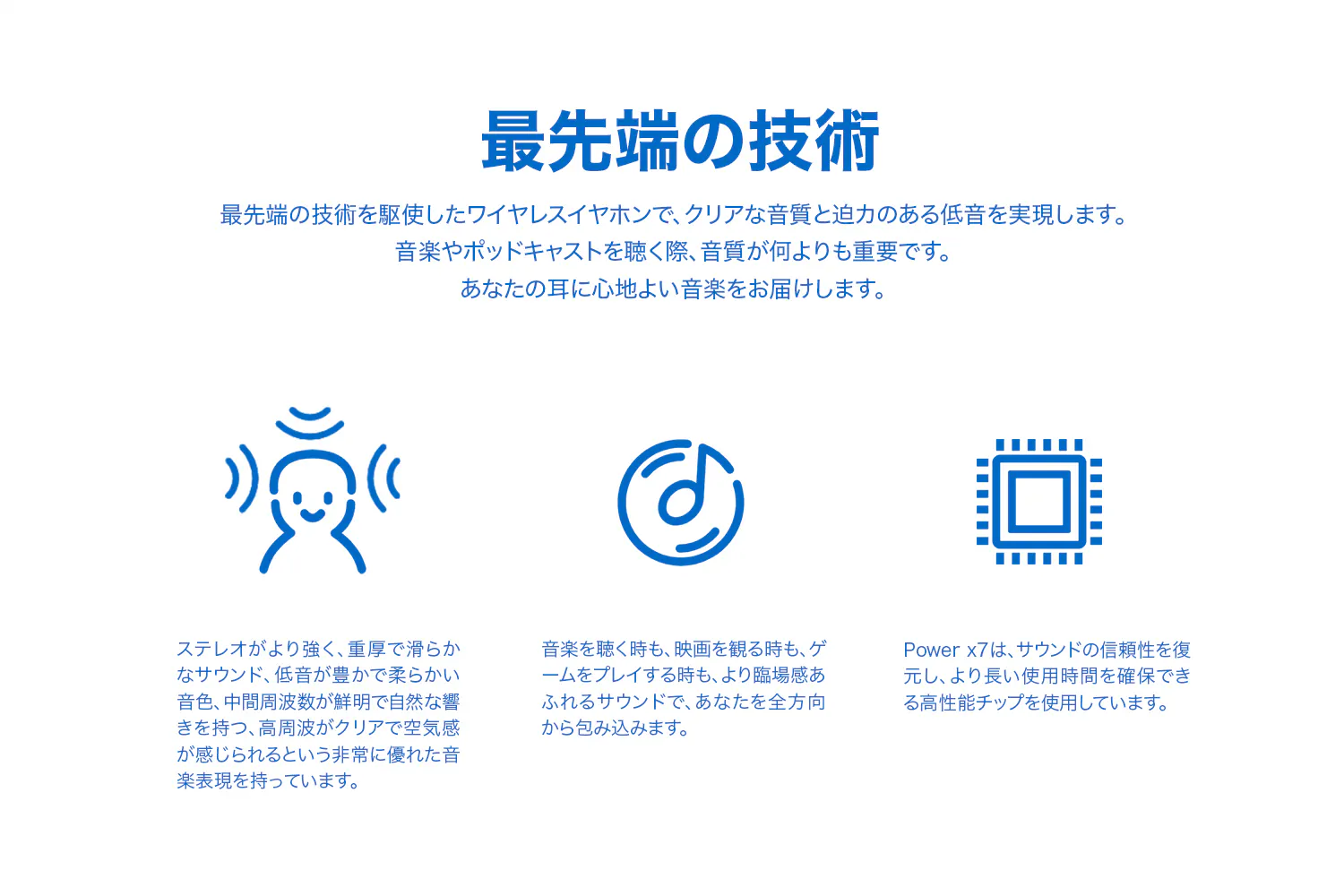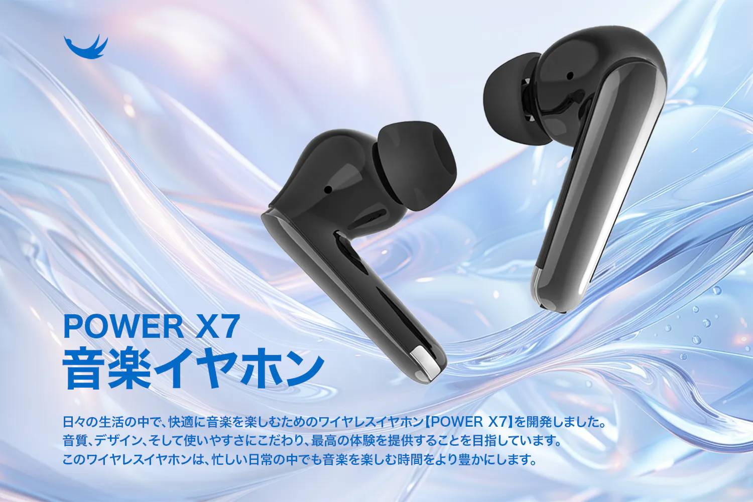 日々の生活の中で、快適に音楽を楽しむためのワイヤレスイヤホン【POWER X7】を開発しました。音質、デザイン、そして使いやすさにこだわり、最高の体験を提供することを目指しています。このワイヤレスイヤホンは、忙しい日常の中でも音楽を楽しむ時間をより豊かにします。
