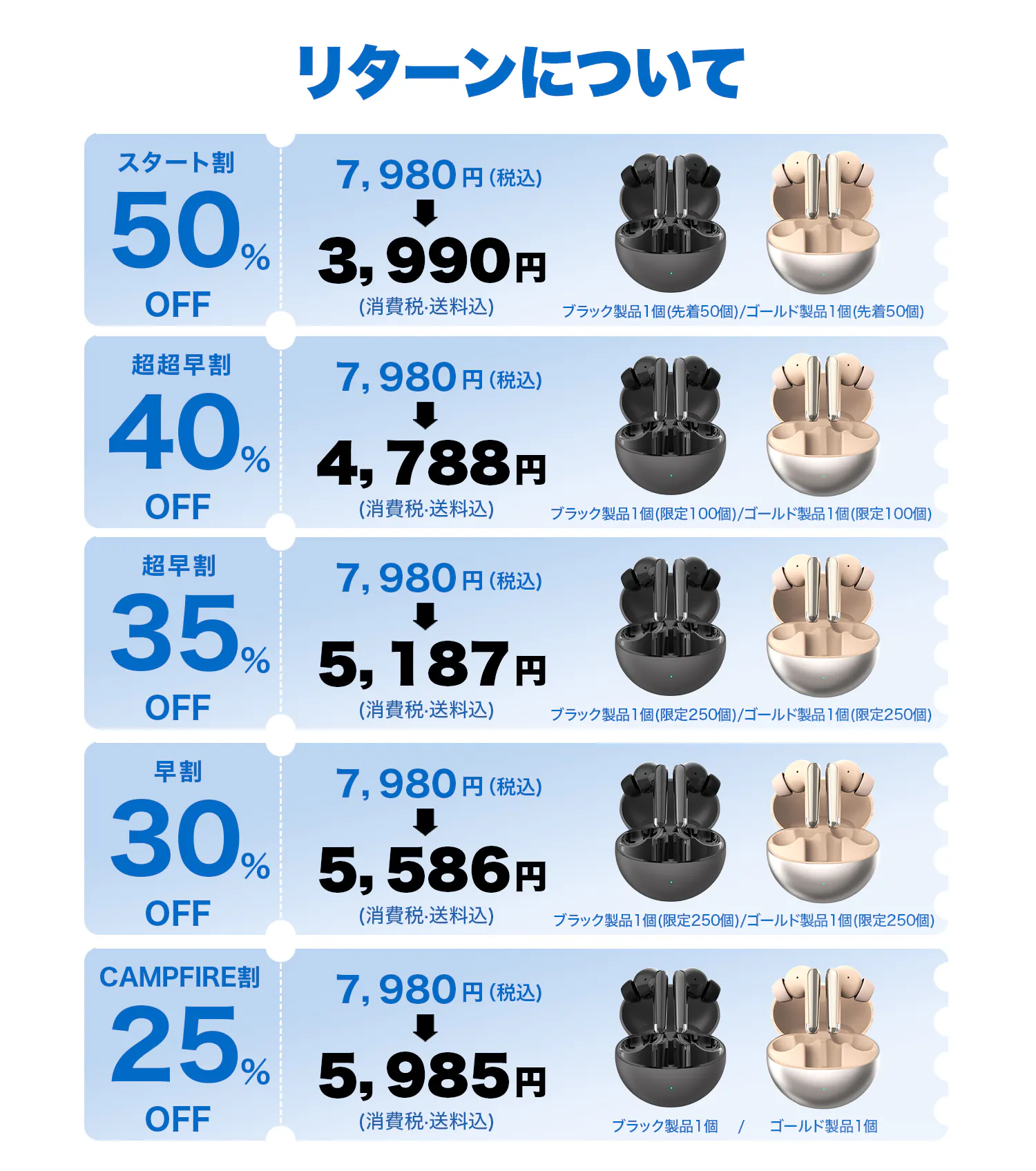 ・5,586円(消費税・送料込)…【早割価格30%OFF】ゴールド製品1個(限定250個)
