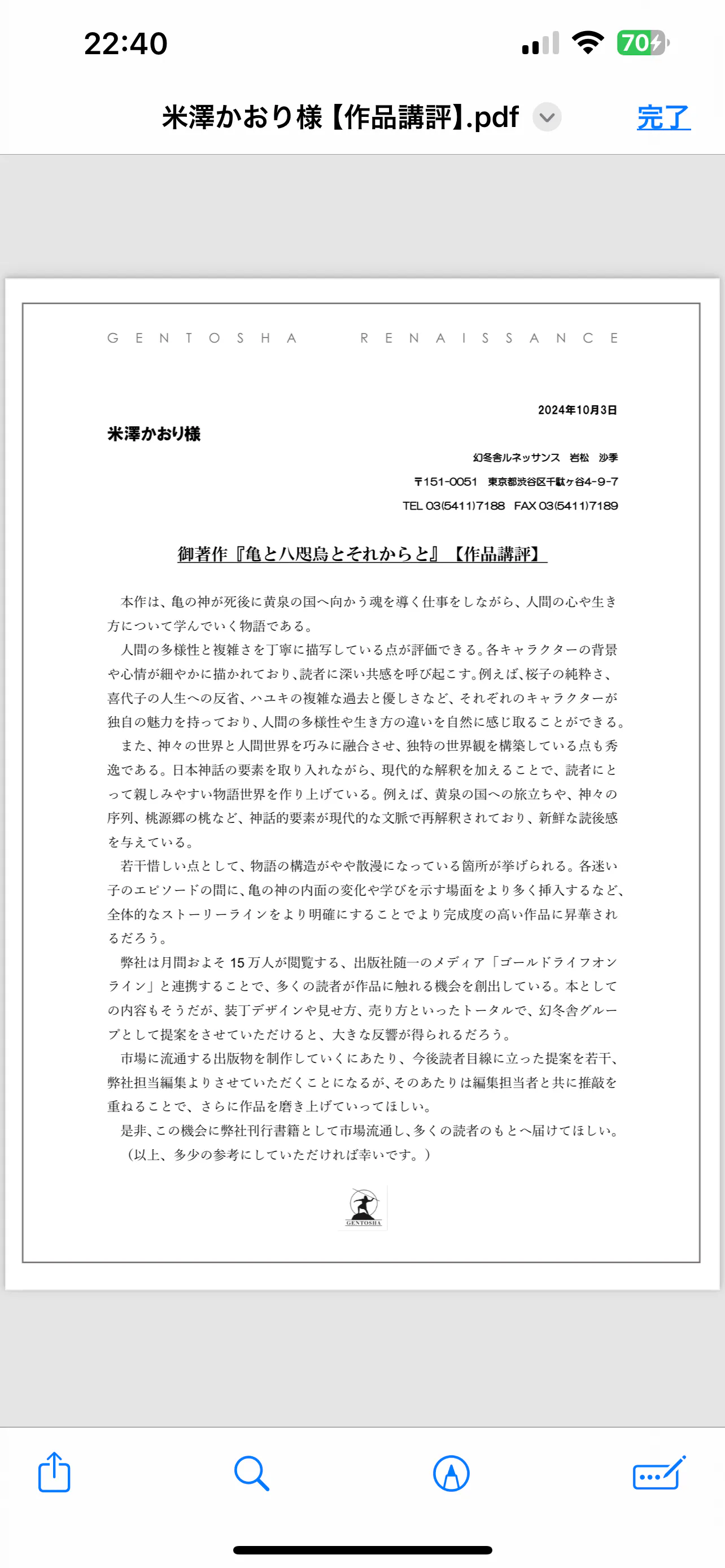 2024/10/04 11:43幻冬舎様からの講評です。 もっと見る