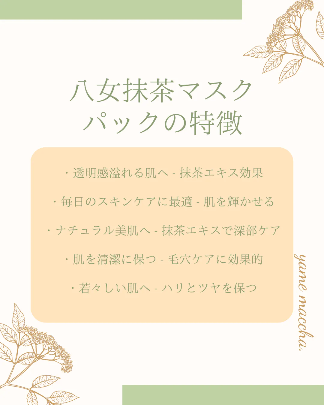 その需要の中で、日本古来の美容方法と現代のスキンケア技術を融合させ、八女抹茶の持つ自然の力を活かし、肌に優しく、かつ効果的なマスクパックを生み出すことができると確信しています!