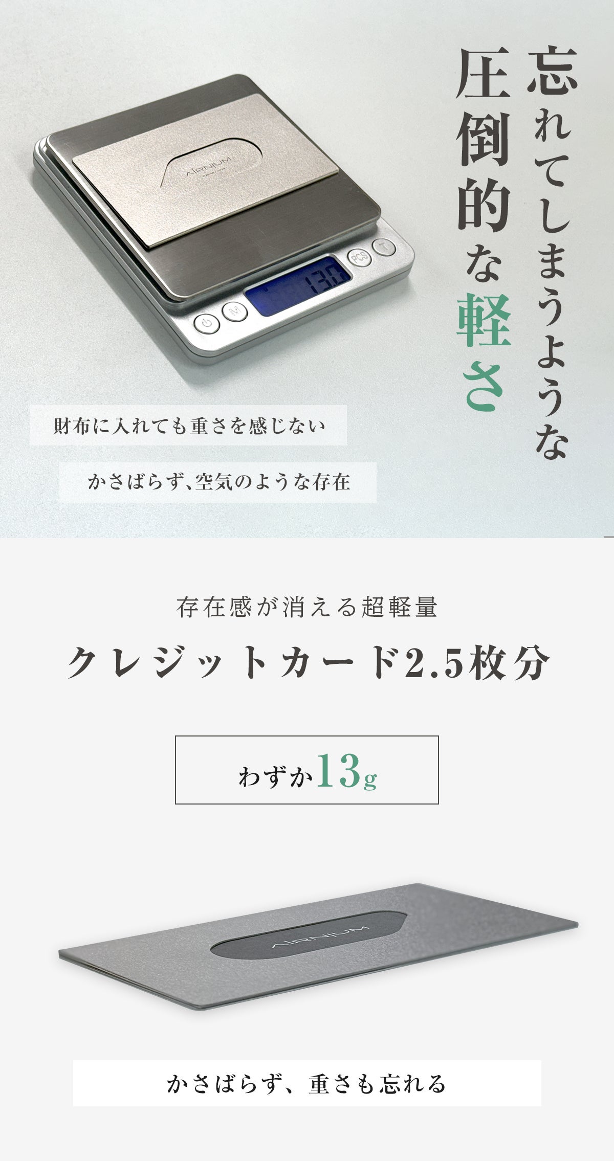 名刺入れの限界サイズに挑んだAIRNIUMの厚さは、驚愕の約1.6mm。財布への収納を実現しました。
