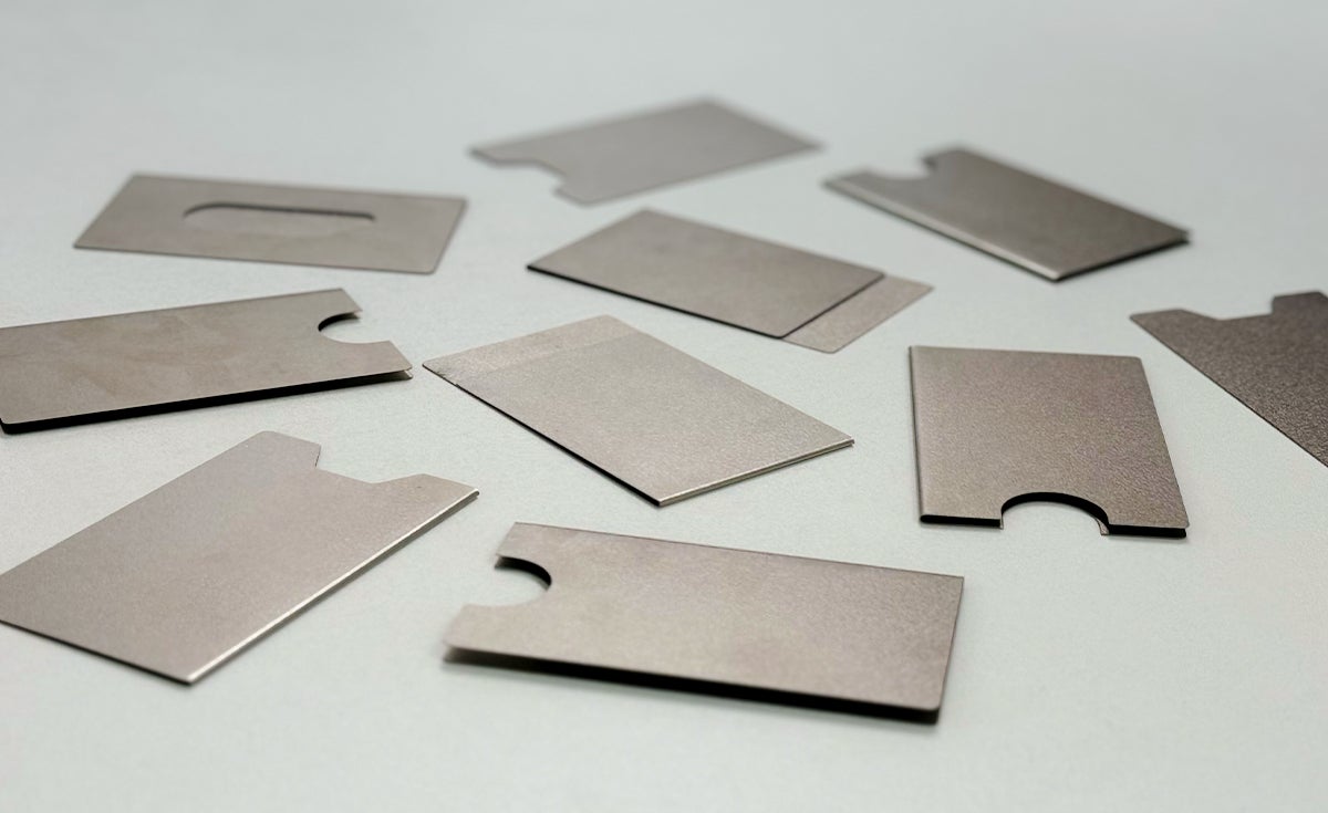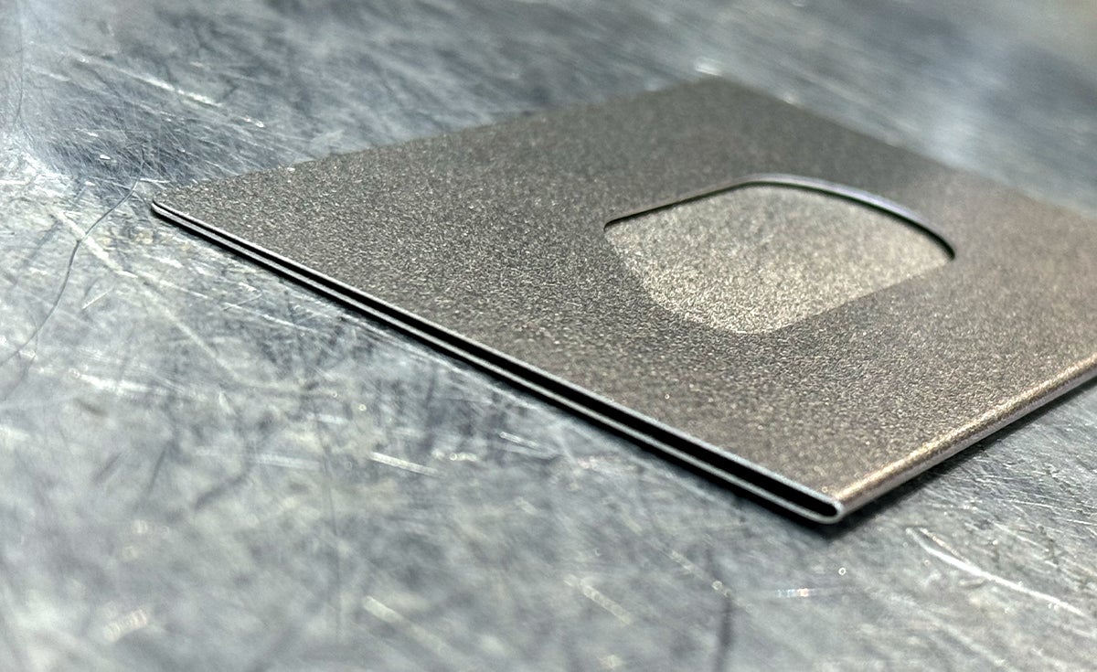 硬く加工が難しいとされる純チタンを、超精密レーザーマシンでコンマ数ミリの狂いもなく切り出し、カットされた面は人の手や大切な名刺を傷つけることのないよう、一つ一つ職人の手で滑らかな面に仕上げられます。