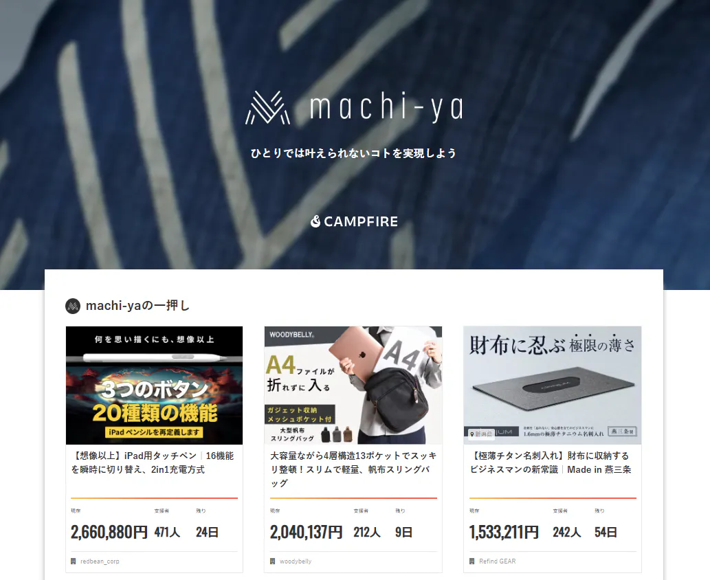 AIRNIUMが、machi-yaの一押しプロジェクトに選ばれました!