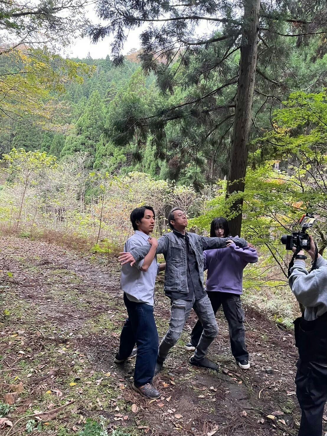 というのも、朝から全員で京都を出発し、車で約2時間。山奥の撮影スポットを目指してのロングドライブです。