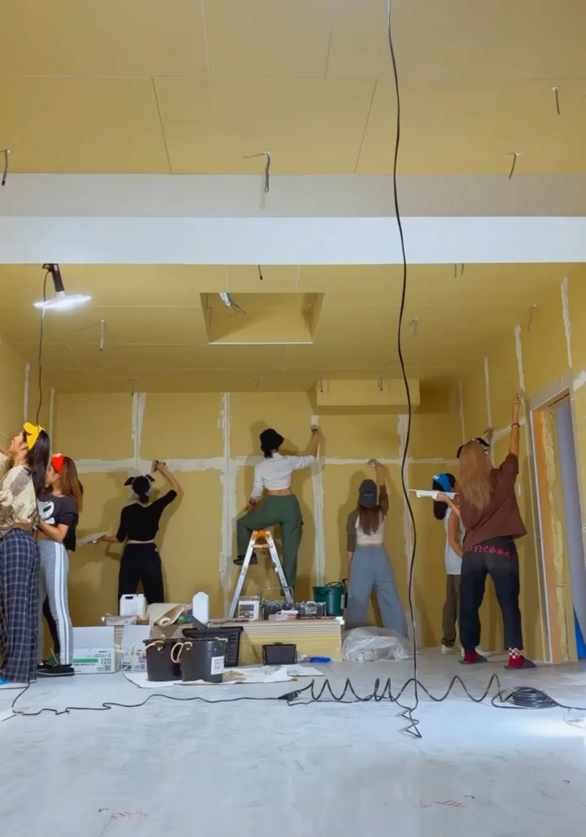 9月中旬から工事が着工し、閑静な住宅街に位置するため防音対策が欠かせず、当初の予算を遥かに超えてしまい🤯なので内装は自分達でやることにして、みんなでペンキ塗りをしています!🤣