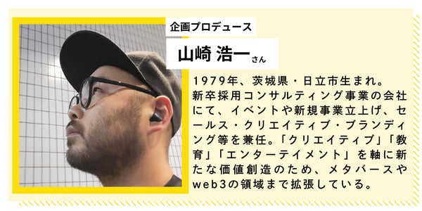 プロデューサーには、Web3・メタバース業界を牽引し、これまでエンタメ、アパレル、建築、不動産、金融、保険、採用、教育、福祉、地方創生等、多分野に携わってきた山崎浩一さんをお迎えするという、スペシャルな布陣で臨みます。