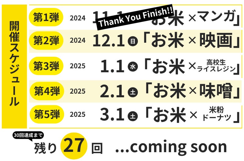 30回クラファンでは、「お米×〇〇」という形で、さまざまな分野の人たちとコラボレーションしていきます。例えば、映画、味噌、ライスレジンなど。あらゆる業界や興味を持つ人々と手を組み、お米を通じて新しい価値を創造していきます。