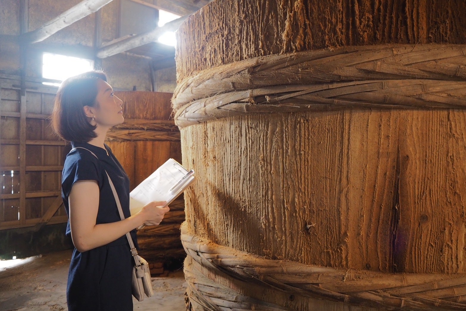 和食のベースとなる醤油、味噌、酢、味醂、酒などは、もともと「木桶」を使って作られていました。ところが今はプラスチックやステンレスの普及により、木桶を使った天然醸造による醤油や味噌の生産量は全体の1%以下まで減少しています。
