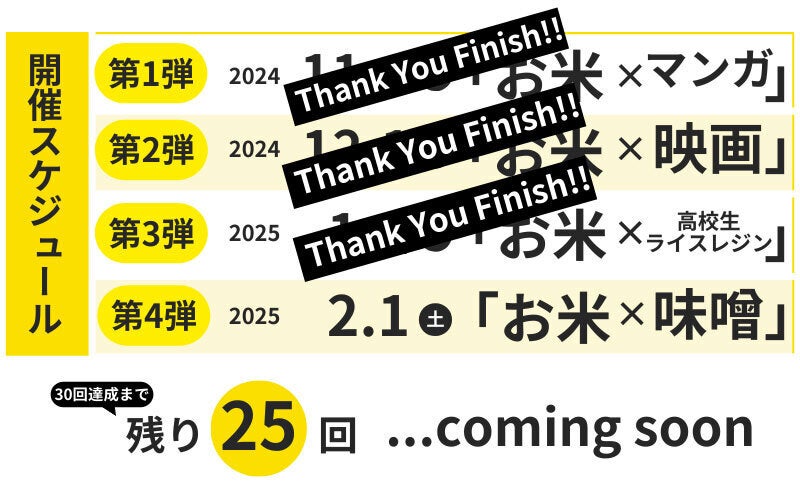 30回という数字は、単なるチャレンジ以上の意味を持っています。長期的にプロジェクトを継続することで、様々なターゲット層にアプローチし、農業や地域をテーマに掘り下げていきたいと考えています。お米×〇〇のプロジェクトが30個以上続いていくことが、一次産業に目がいき、触れることで、より大きな社会的意義を見出すと考えています。