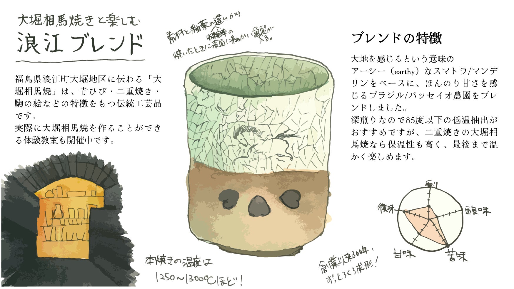 付属のポストカードイメージ。コーヒーで地域を表現することに挑戦します!