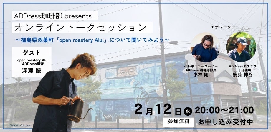 2025/01/30 08:00クラウドファンディングが終わってあっという間に2週間。着々と進む工事に時の流れをヒシヒシと感じつつも、少しずつオープニングの準備を進める日々です。来週にはAlu.の心臓部といっても過言ではない「焙煎窯」の搬入と稼働メンテナンスがあるので、そちらの様子もお届けできれば…と思っているのですが、本日はイベントのご案内です!実はわたくし、ADDressという「多拠点プラットフォームサービス(簡単にいうと月額プランで全国のいろいろなお家に住めるサービス)」にも少し関わっているのですが、この度ADDressのメンバーと一緒にコーヒーやAlu.についておしゃべりする機会をいただきました。トークセッションのメンバーはADDress繋がりの方なのですが、クラウドファンディングの裏話や今どんな感じで準備を進めているのかなど、open roastery Alu. のことをがっつりおしゃべりする予定です!イベント視聴にはADDressへの会員登録は必要なく、もちろん参加費などもかからないので、よかったら下記URLサイトからお申し込みの上ご参加いただけると嬉しいです。(自分しっかりとあがり症なので、知ってる人にちらっとでも来ていただけると嬉しいなーー……)どうぞよろしくお願いいたします!>>https://address-coffee-01.peatix.com/▼基本情報2025年2月12日 (水) 20:00~21:00会場:オンライン※ZoomURLは申し込み後、イベント視聴ページよりご確認ください。主催:株式会社アドレス、ADDressコーヒー部▼スケジュール20:00 オープニング20:10 トークセッション20:35 座談会20:55 クロージング▼参加方法Peatixにてご予約下さい。Zoomにて開催を予定しています。※ZoomURLは申し込み後、イベント視聴ページよりご確認ください。 もっと見る