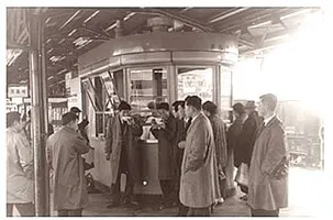 「姫路駅名物のえきそば」は終戦後、何もない混乱期に軍の統制品であった小麦粉の替わりに蒟蒻粉とそば粉をまぜたそばを販売。その後、試行錯誤の結果現在のかんすい入りの黄色麺にたどり着き、「和風だしに中華麺」というユニークな商品が誕生しました。ミスマッチが生み出す独特の旨さはたちまち評判となり昭和24年に「えきそば」と名付けられ立ち売り販売を経て駅のホーム上売店へ発展していきました。本年で生誕75年目〝姫路のB級グルメ〟〝播州のソウルフード〟とメディアにも取り上げられ地域の皆様の想い出に寄り添いながら現在も親しまれています。