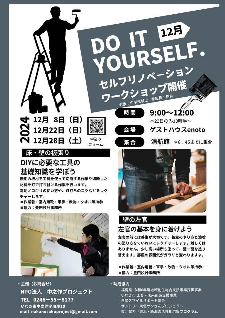 画像はゲストハウス整備で予定しているDIY教室の案内です。